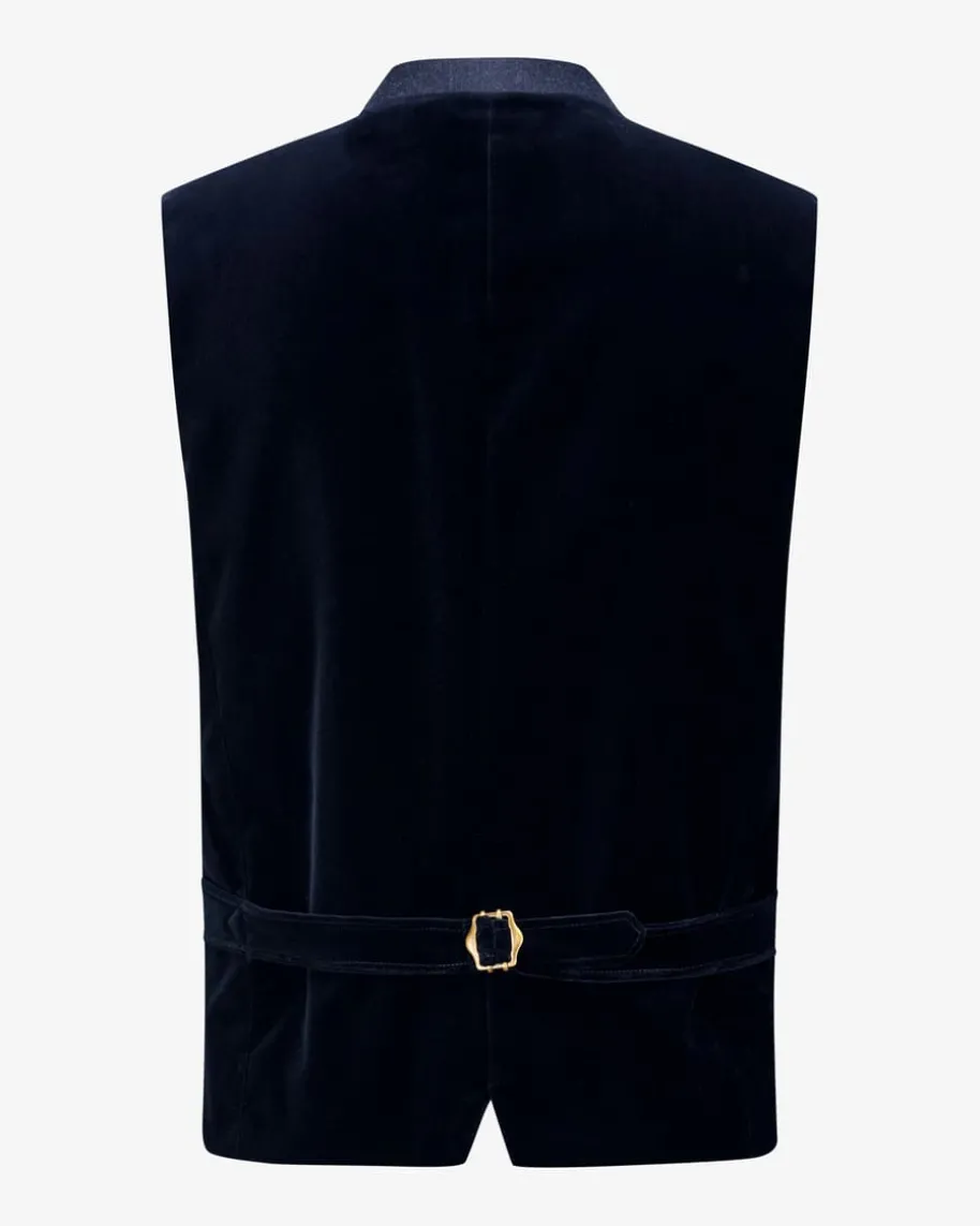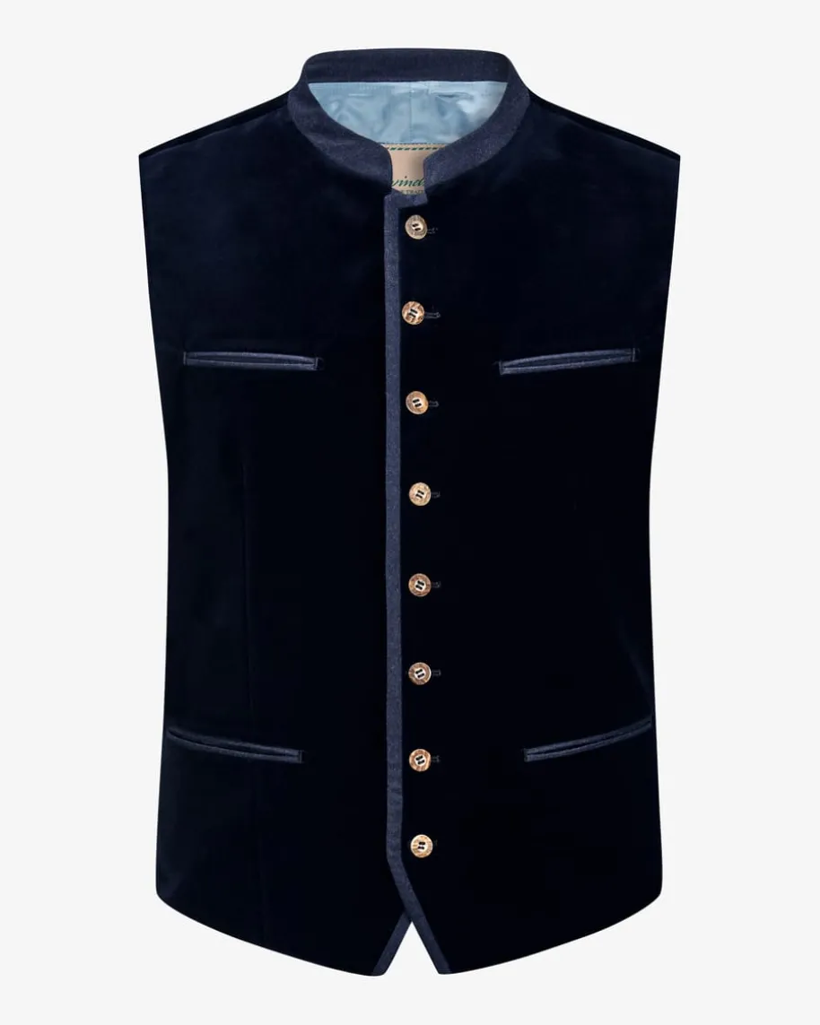 Au Trachtenweste für Herren von Windsor in Dunkelblau und Blaugrau. Das Modellaus weichem Baumwoll-Samt überzeugt mit edlen Details und traditionellenAkzenten, während echte Hornknöpfe einen klassischen Blickfang für modischeTrachten-Looks schaffen.