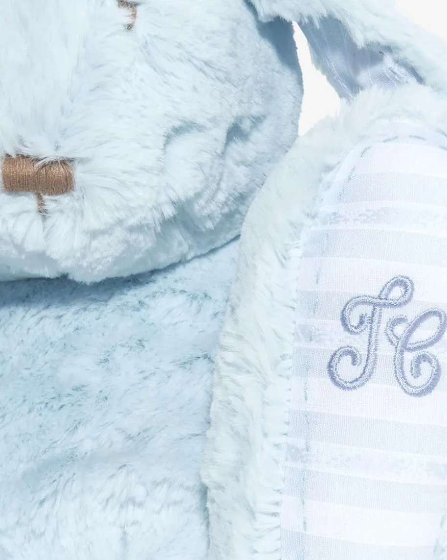 Augustin Plüschtier Hase von Tartine et Chocolat in Hellblau. Der Plüschhase Augustin ist aus weichem Material gefertigt und gewinnt durch seine süße Optik schnell das Herz von Kindern. Mit treuen Augen, einer Stupsnase, großen Ohren und einem niedlichen Schwänzchen ist der sitzende Kuschelhase mit allen charakteristischen Merkmalen ausgestattet. Schöne Akzente setzen gestreifte Stoff-Einsätze mit Ziernähten und Logo-Stickerei, während eingearbeitete Kügelchen für eine raffinierte Haptik sorgen. Die Geschenkbox macht das Plüschtier zum idealen Präsent zur Geburt oder zur Taufe.