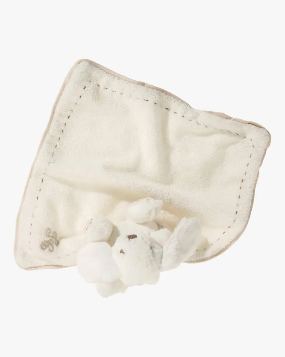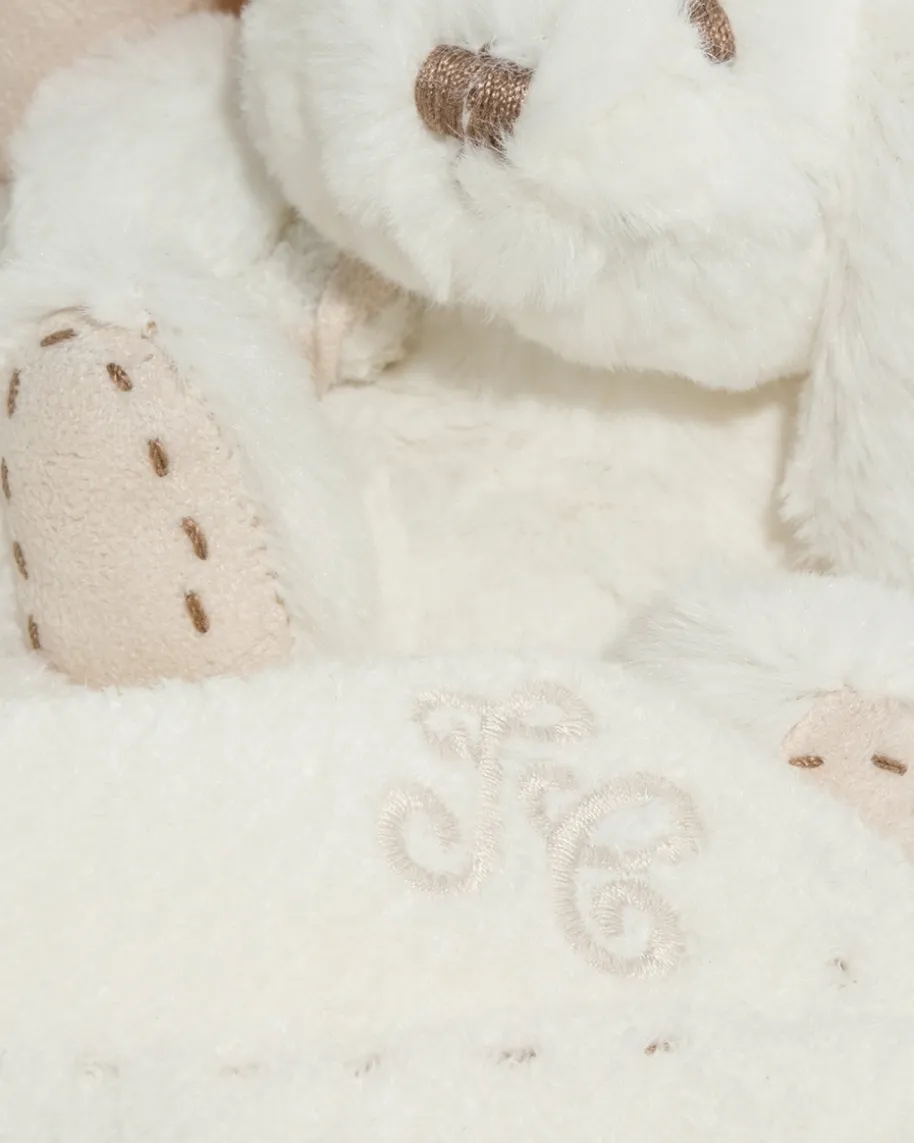 Augustin Plüschtier Hase mit Tuch von Tartine et Chocolat in Creme. Augustin ist ein kuscheliger Spielgefährte ebenso für kleine wie für große Kinder. Mit seinem flauschigen Fell ist das Stofftier ein toller Schmusepartner. Neben den süßen Ohren verstärken auch die stoffwattierten Füße die niedliche Optik. Für Abwechslung und Spaß beim Greifen sorgt die mit feinen Kunststoffperlen gefüllte Partie in den Ohren. Ein an das Häschen fixierte Schmusetuch mit Logo-Stickerei und Paspelierung sorgt für viel Spaß beim Kuscheln und Greifen. Inklusive der passenden Geschenkschachtel ist das Kuscheltier immer eine besonders gelungene Überraschung und somit das perfekte Geschenk, zum Beispiel für Geburtstage oder die Taufe.