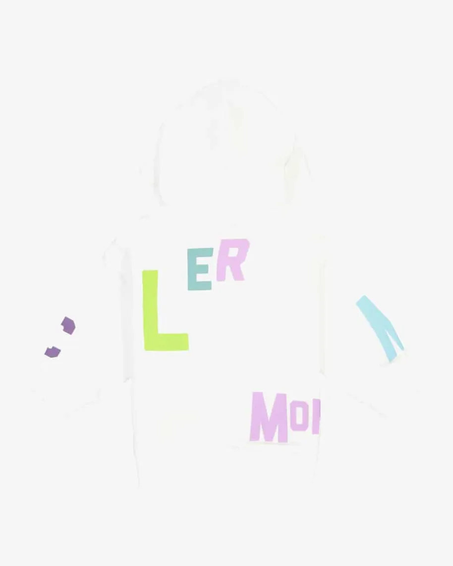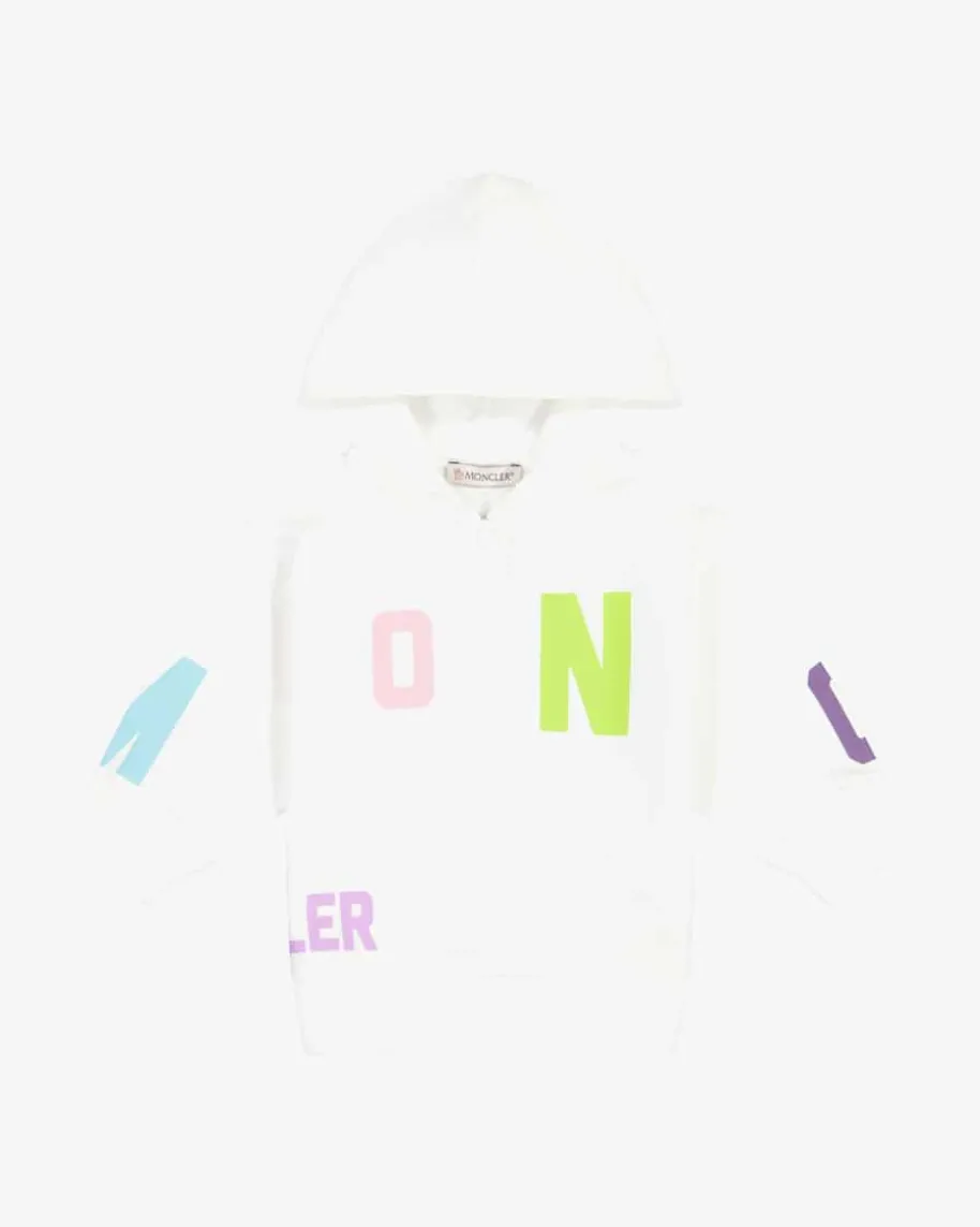 Baby-Hoodie von Moncler Enfant in Weiß und Bunt. Das sonst schlichte Design imsportiven Look wird durch den farbenfrohen Logo-Schriftzug gekonnt in Szenegesetzt.