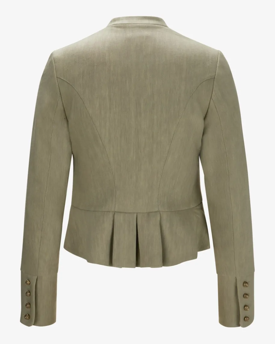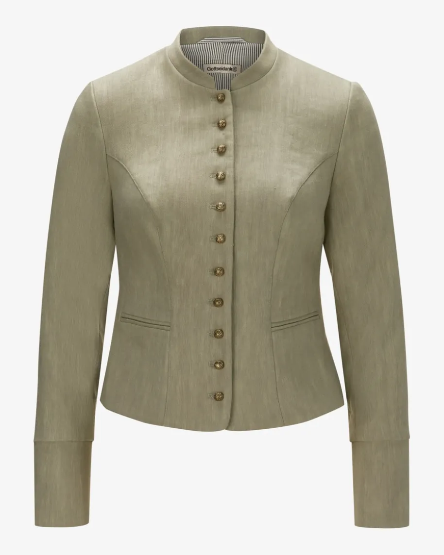 Barbara Trachtenblazer für Damen von Gottseidank in Schilf. Der hochwertigeLeinen-Mix punktet mit besonders angenehmem Tragekomfort, während filigrane,goldfarbene Knöpfe sowie ein dezentes Schößchen das traditionelle Modell gekonntvollenden.