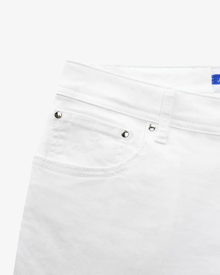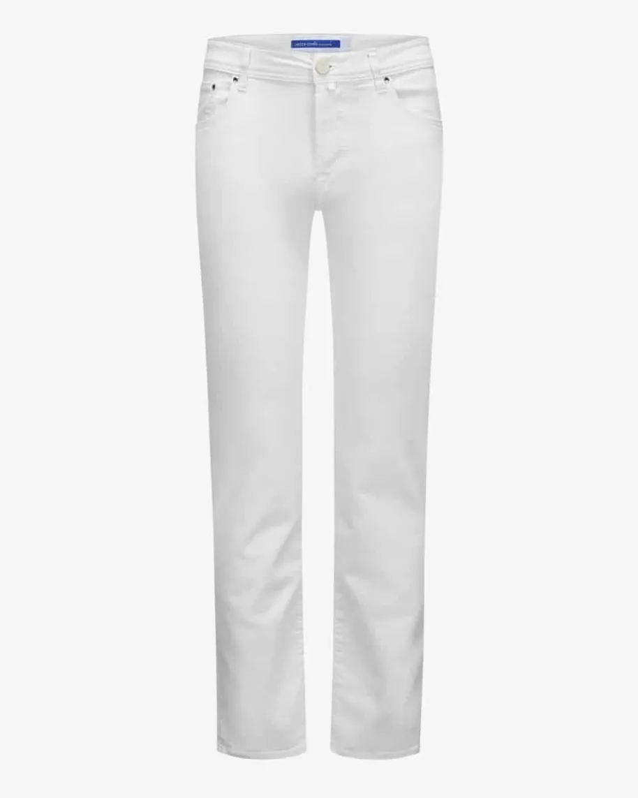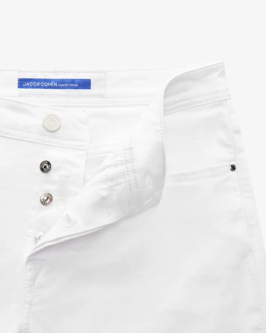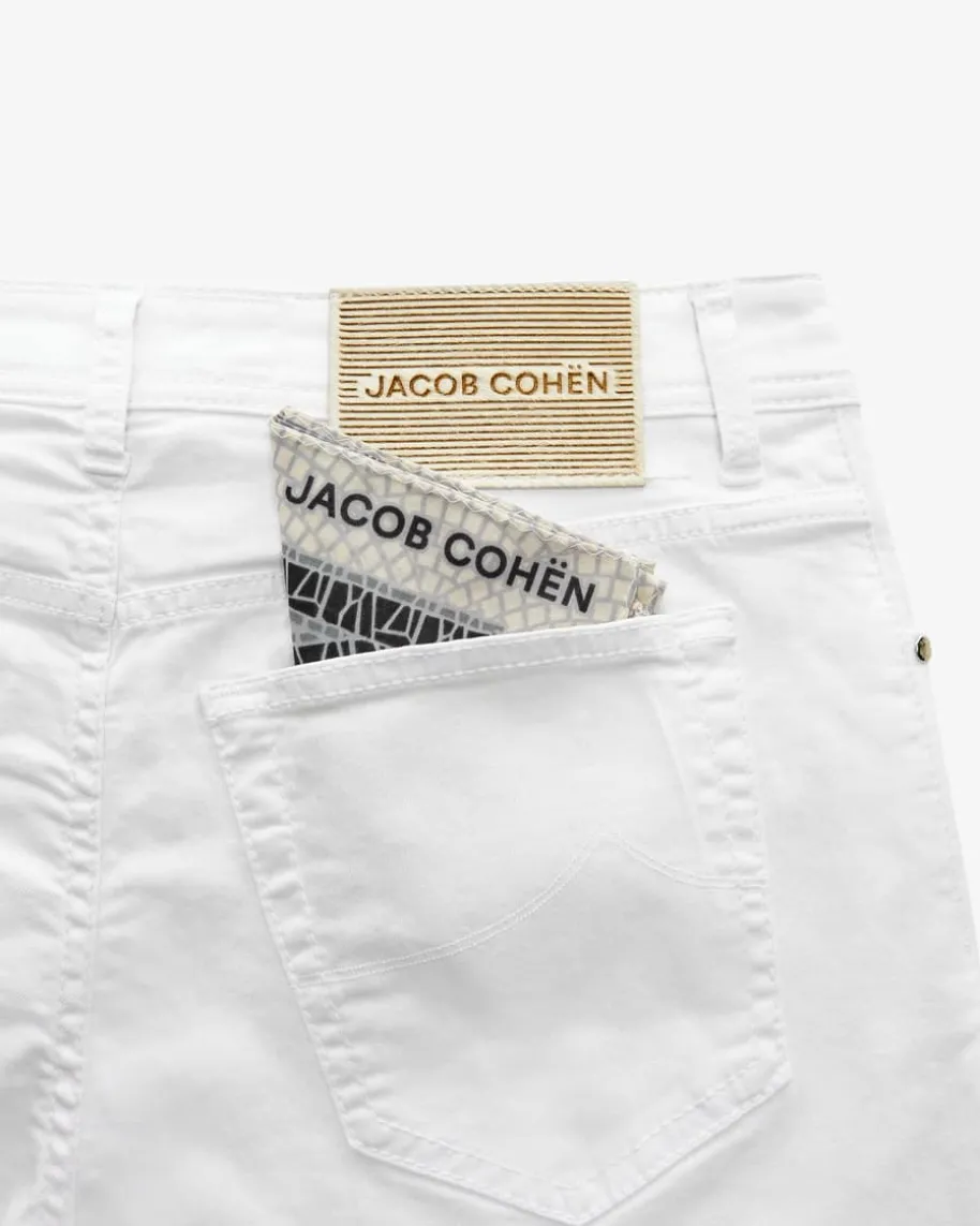 Bard Jeans Slim Fit für Herren von Jacob Cohen in Weiß. Handgefertigt in Italien- Dank hochwertigem, elastischen Baumwoll-Mix und Verwendung organischer Farbenwird höchster Qualitäts-Standard und ein besonders hoher Komfort garantiert,während die charakteristische Ponyfell-Plakette das klassische Denim-Modelllabeltypisch unterstreicht.