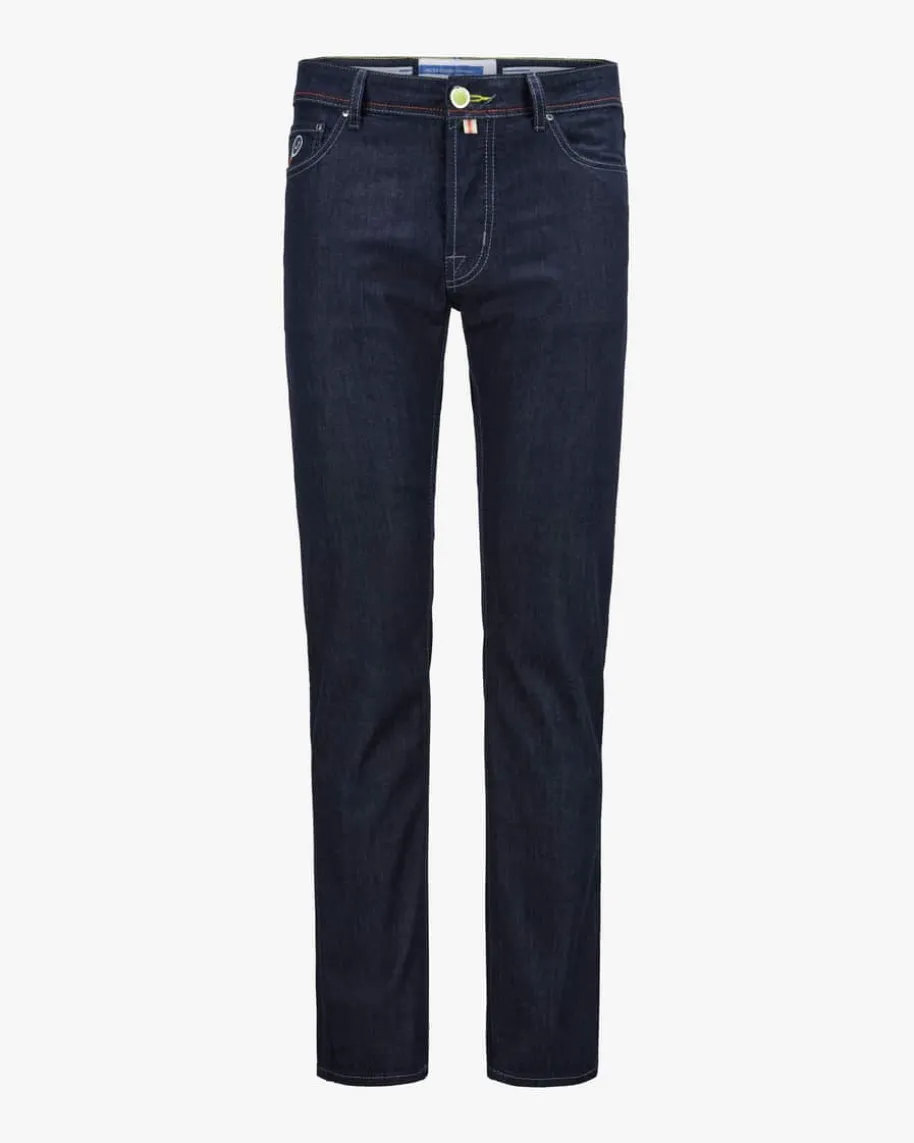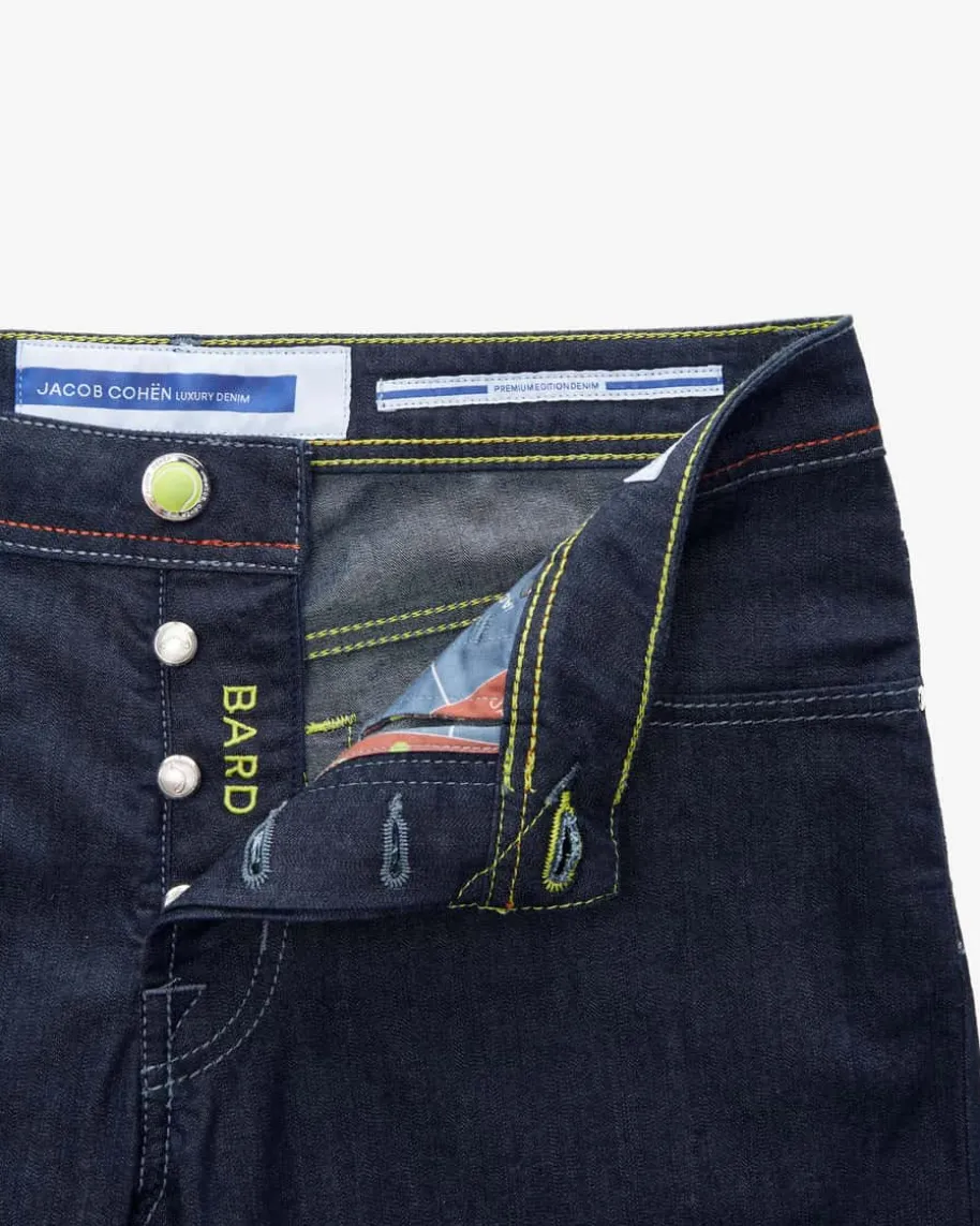 Bard Jeans Slim Fit für Herren von Jacob Cohen in Dunkelblau. Handgefertigt inItalien – Dank hochwertiger Baumwolle und Verwendung organischer Farben wirdhöchster Qualitäts-Standard garantiert. Während die softe Denim-Qualität einenzeitlosen Hosen-Begleiter kreiert, runden raffinierte Tennis-Details, die sichin der rückseitigen Label-Plakette sowie dem Knopf und einer Stickereiwiderspiegeln, das Gesamtbild mit besonderer Note ab.