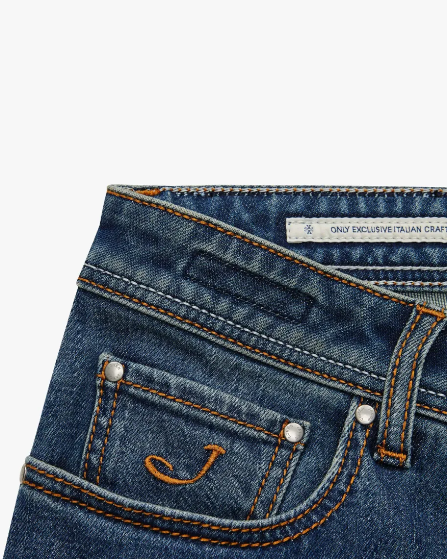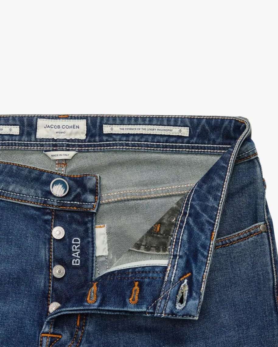 Bard Jeans Slim Fit für Herren von Jacob Cohen in Blau. Made in Italy -Dank hochwertigem und elastischem Baumwoll-Mix überzeugt das schmal geschnitteneModell mit besonders hohem Tragekomfort, während der klassische Denim-Look mitKontrastnähten einen modernenAlltags-Favoriten mit besonderer Note schafft.