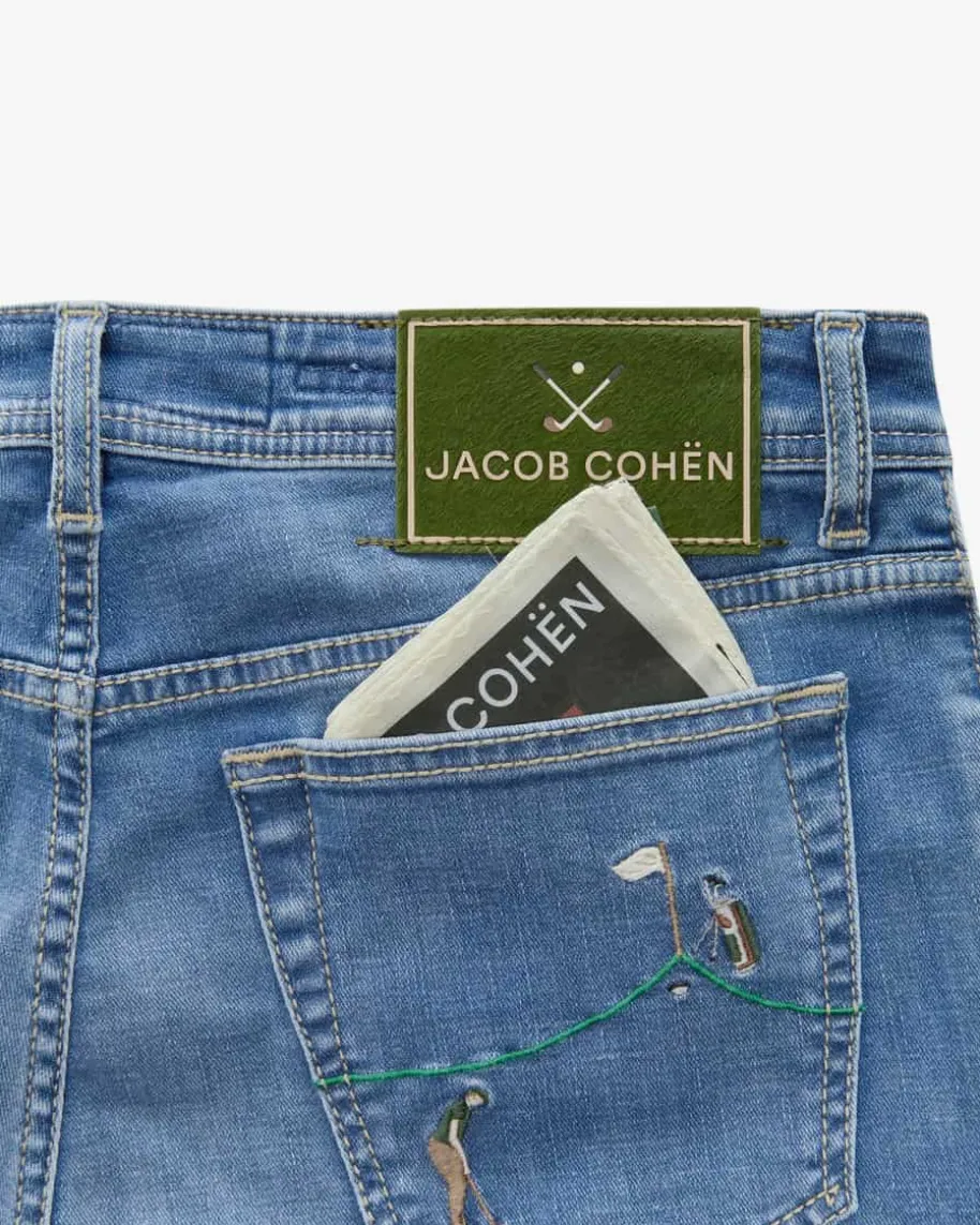 Bard Jeans Slim Fit für Herren von Jacob Cohen in Blau. Made in Italy – Dankhochwertiger Baumwolle und Verwendung organischer Farben wird höchsterQualitäts-Standard garantiert. Das Modell in schmaler Passform überzeugt dankelastischem Baumwoll-Mix mit angenehmen Tragemomenten, während dieschlichte Aufmachung einen zeitlosen Begleiter für vielseitige Styles schafft.