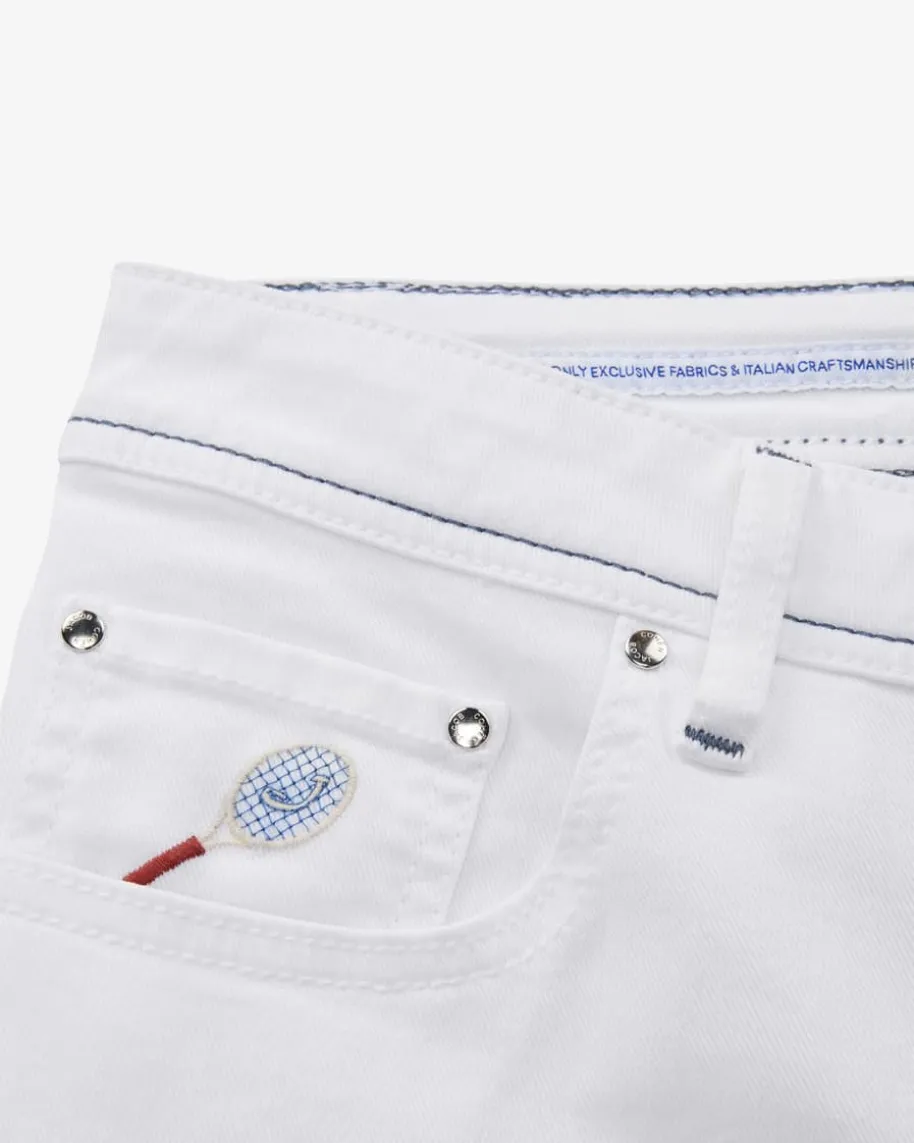 Bard Jeans für Herren von Jacob Cohen in Weiß. Das Modell besticht dank derelastischen Baumwoll-Verarbeitung mit angenehmen Tragemomenten, währendklassische Details sowie Kontrastnähte modische Akzente setzen.