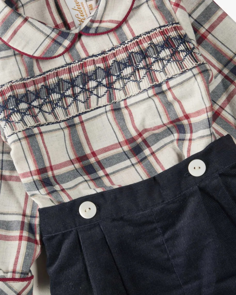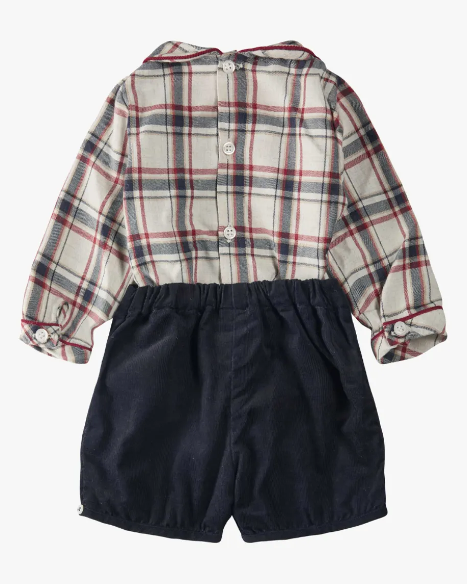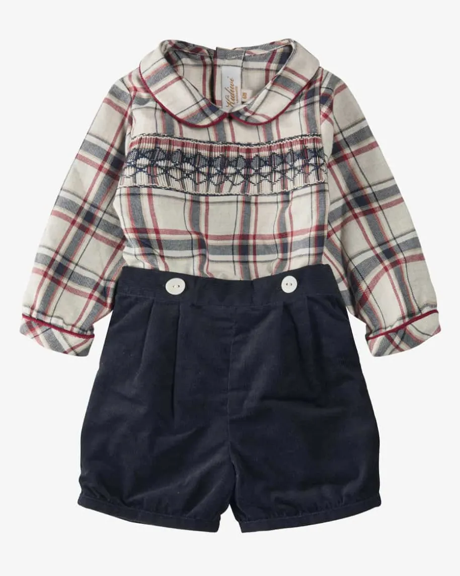 Barnabe Zweiteiler für Jungen von Kidiwi in Navy, Wine und Ecru. Mit diesemniedlichen Set, bestehend aus Karo-Hemd und Cord-Shorts, ist Ihr Kleiner fürjeden festiven Anlass bestens gekleidet.
