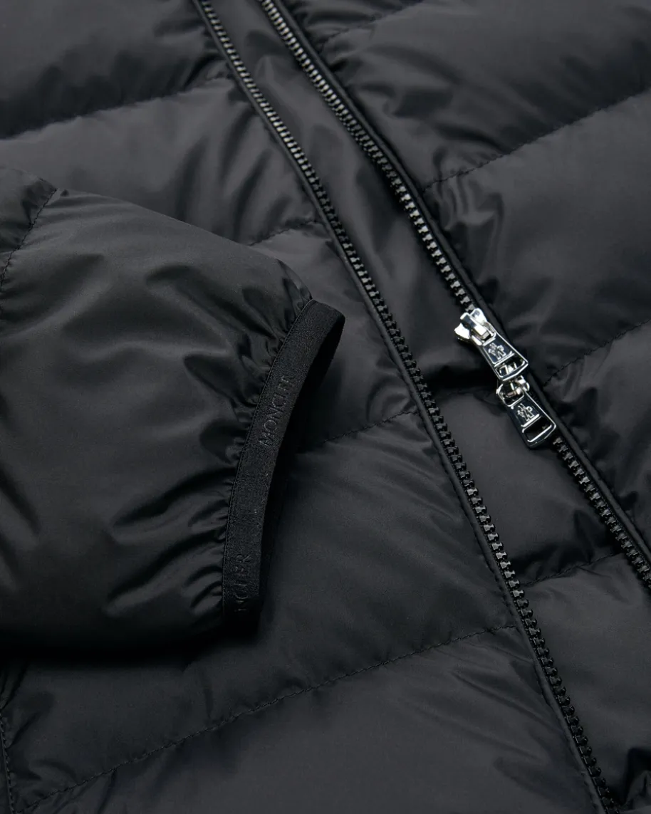 Baudinet Daunenjacke für Herren von Moncler in Schwarz. Denkt man anhochwertige, warme Daunenjacken, kommt einem unweigerlich das italienischeTraditionslabel Moncler in den Sinn. Sportiv-maskulin überzeugt das Modell imklassischen Stepp-Design, während die leichte Daunen-Feder-Füllung einenwärmenden Begleiter für moderne Winterlooks kreiert.