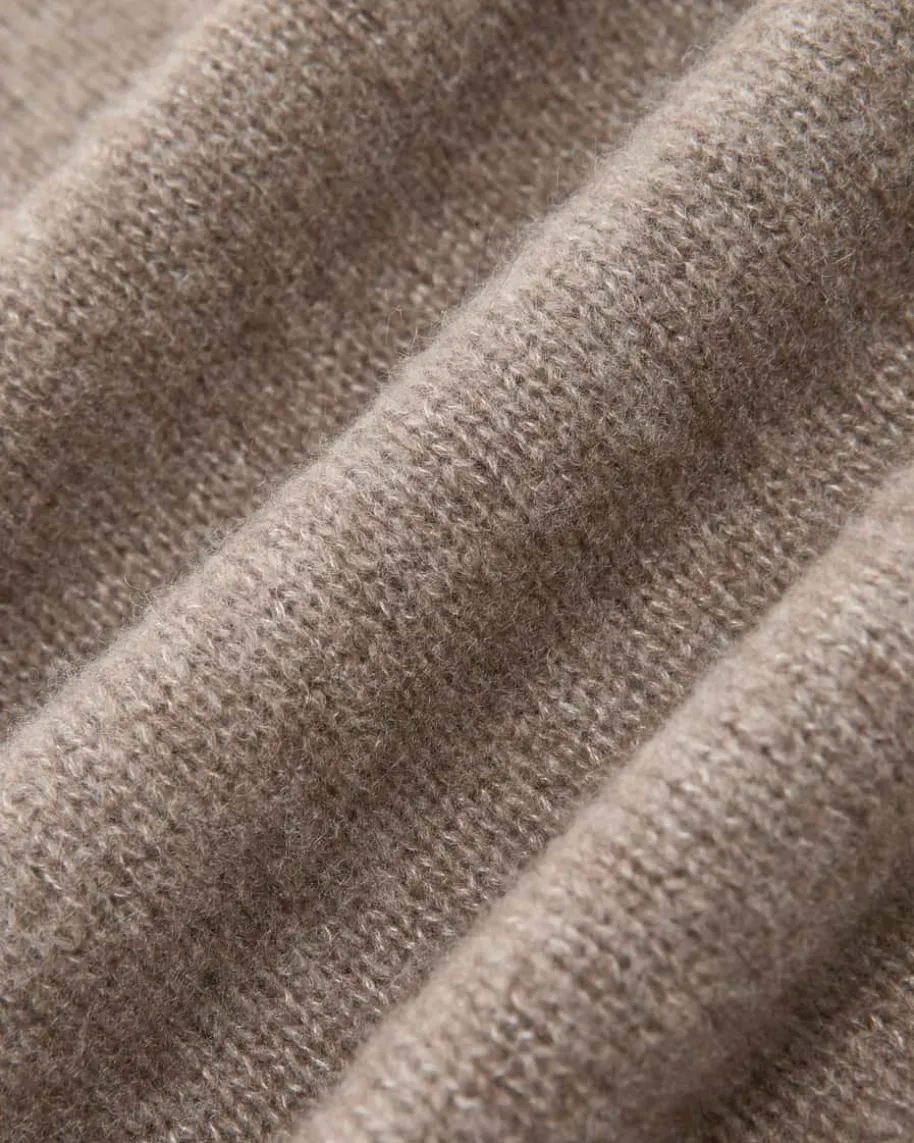 Baxter Cashmere-Seiden-Pullover für Herren von Lisa Yang in Nougat. Das legergeschnittene Modell besticht dank hochwertigem Cashmere-Seiden-Mix mit einembesonders weichen Griff, während das schlichte Strick-Design in melierter Optikeinen vielseitigen Alltagsbegleiter kreiert.