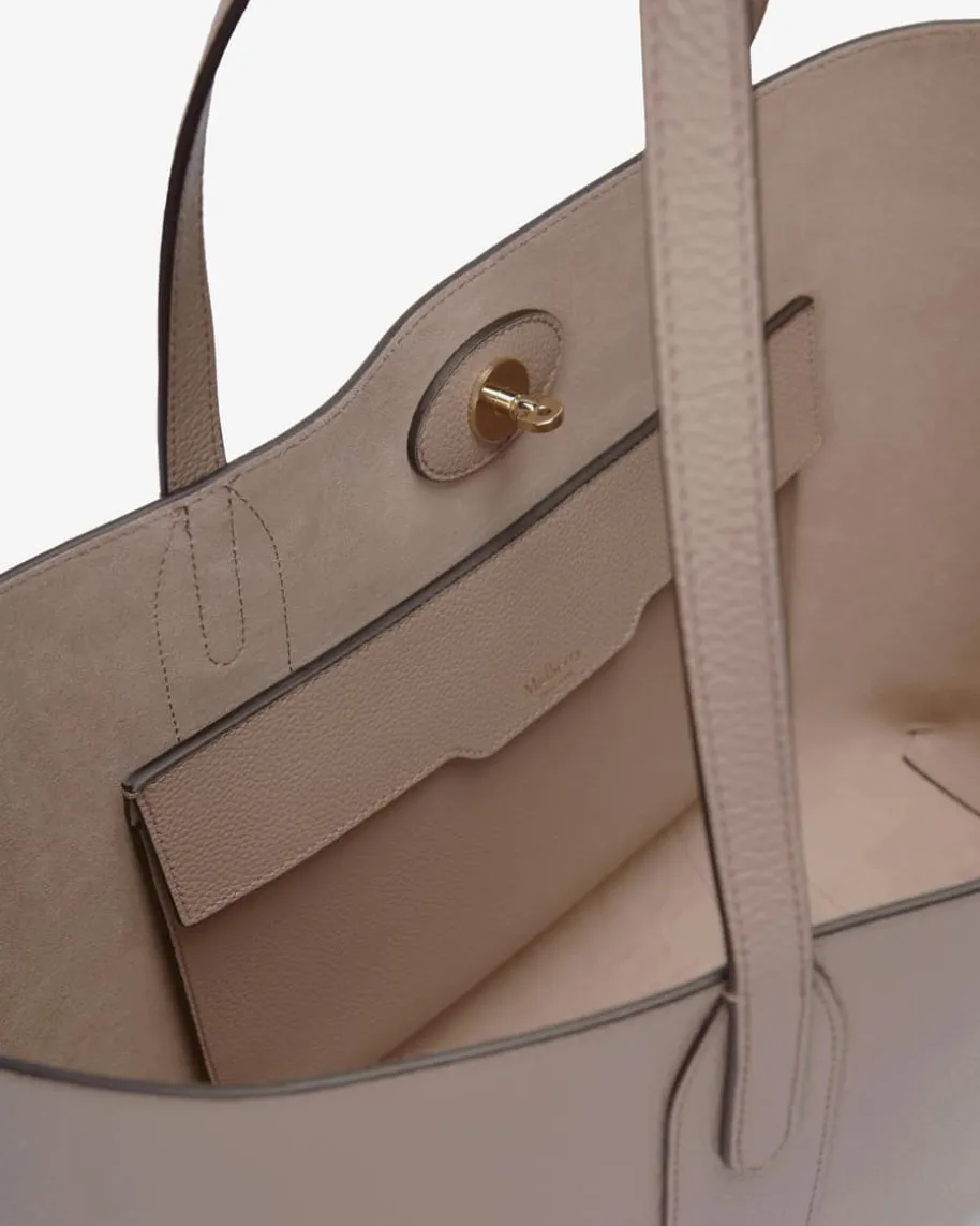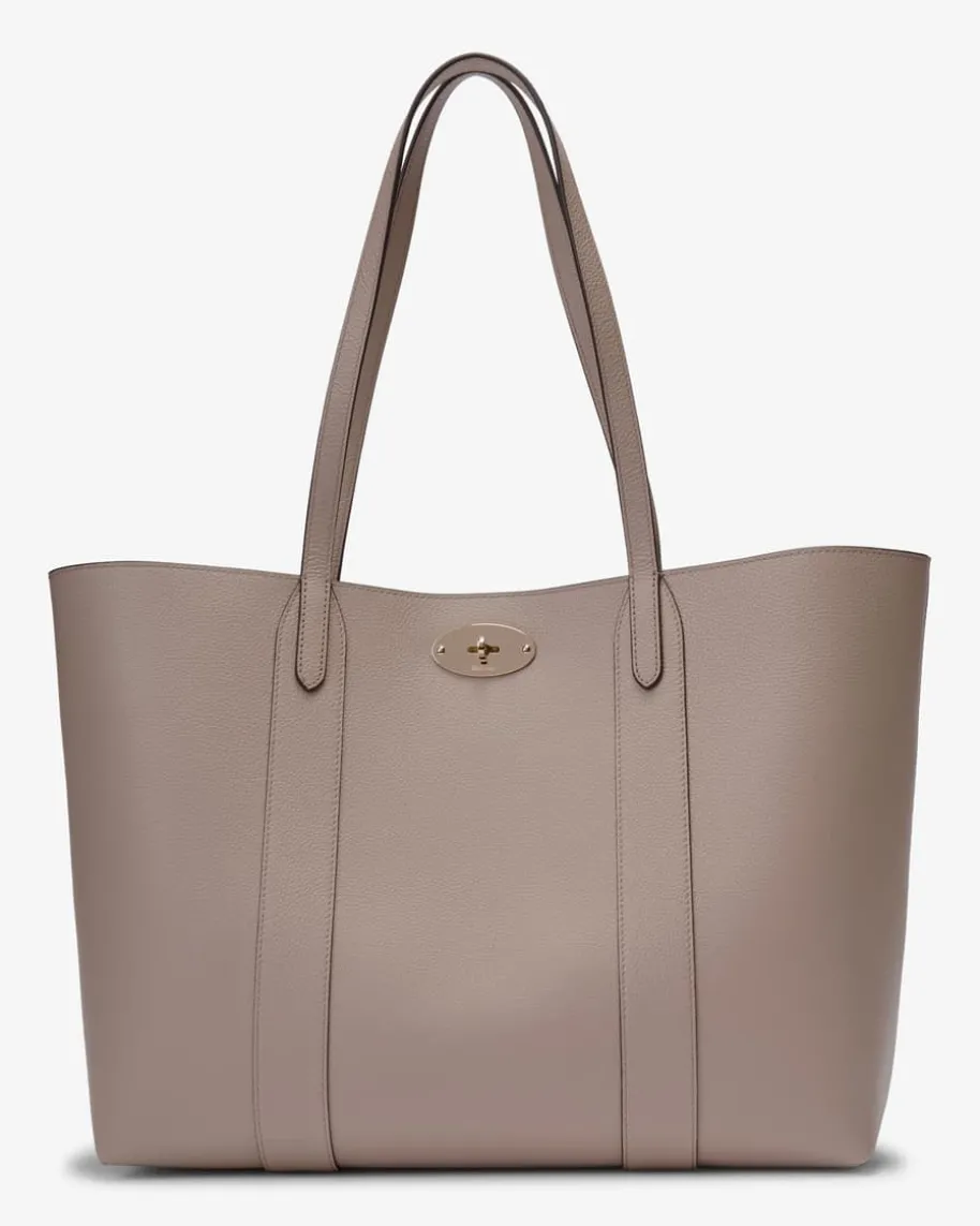 Bayswater Tote Small Shopper für Damen von Mulberry in Taupe. Das Modellaus hochwertig genarbter Leder-Qualität avanciert dank luxuriöser Aufmachung zumstilvollen Accessoire für modische Looks. Die offene Form mit raffiniertem Dreh-Verschluss vervollständigt das edle und zeitlose Gesamtbild gekonnt.
