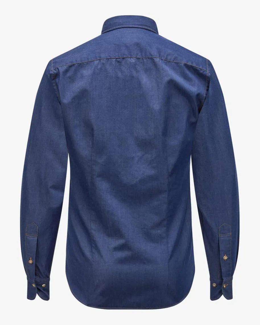 Beppo Trachtenhemd für Herren von Du4 in Dunkelblau. Das taillierte Modell ausangenehmer Baumwolle in Jeans-Optik erweist sich als stilvoller Partner fürtraditionelle Looks, während klassische Details sowie rustikale Hornknöpfe dasGesamtbild gekonnt in Szene setzen. Zugleich sorgen die markanten Kontrastnähtefür das gewisse Etwas.
