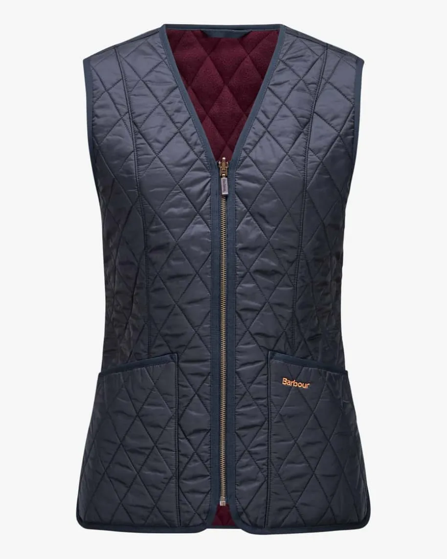 Betty Liner Steppweste für Damen von Barbour in Navy. Das 1894 gegründetebritische Traditionshaus ist weltberühmt für gewachste Outdoorjacken mitHeritage-Flair. Dieses Modell präsentiert sich dank der taillierten Passformsowie dem Rautenstepp-Design als vielseitiger Layering-Favorit, welcher durchdie sportive Paspelierung und das wärmende Fleece-Futter gekonnt abgerundetwird.
