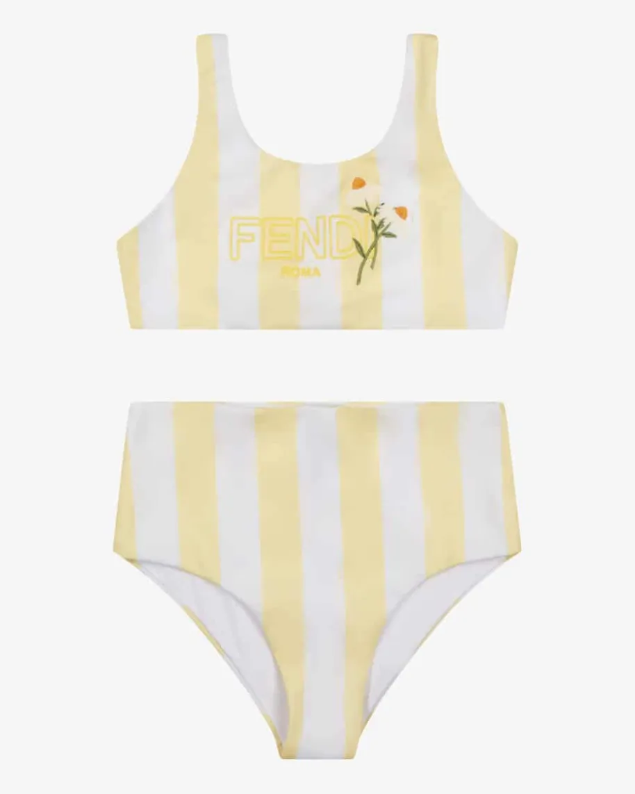 Bikini für Mädchen von Fendi Kids in Hellgelb und Weiß. Das Modell präsentiertsich dank des Streifen-Dessins in modischer Aufmachung, während die elastischeMaterial-Qualität angenehme Tragemomente für sommerliche Badetage verspricht.