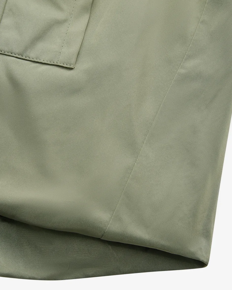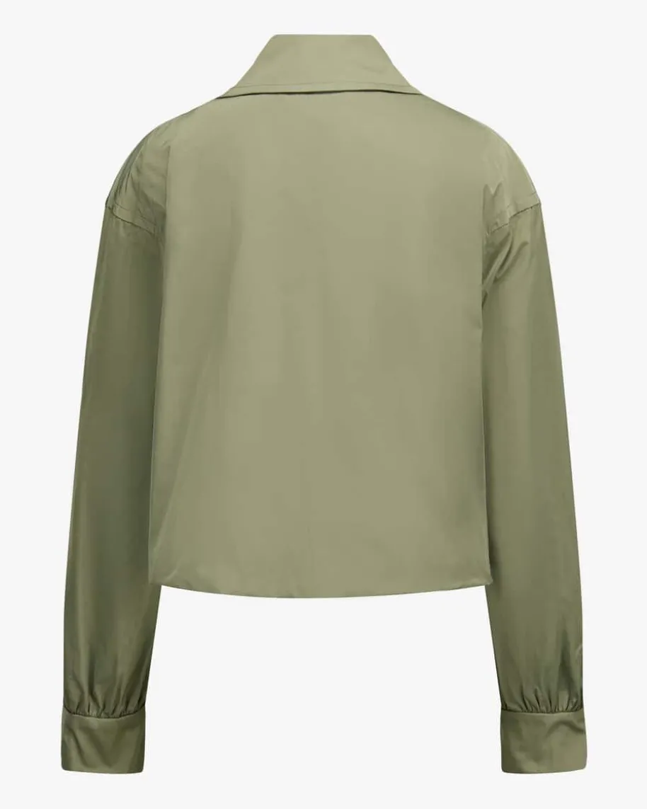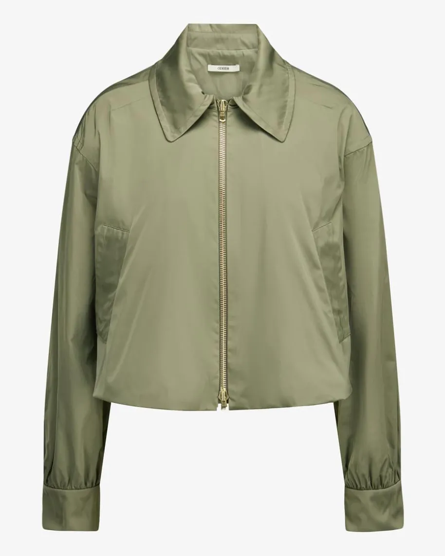 Blouson für Damen von Odeeh in Oliv. Das Modell präsentiert sich inausgestellter Passform mit dezenten femininen Raffungs-Details, während dieglänzende Optik sowie der goldene Reißverschluss einen edlen Eyecatcherschaffen.