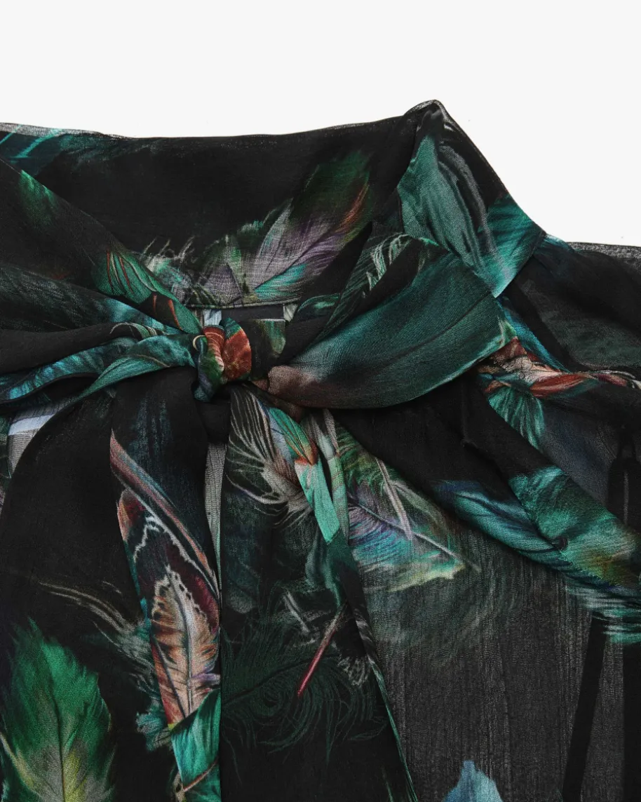 Samtblazer für Damen von Marc Cain in Schwarz, Grün und Blau. KombistarkeDesigns mit hohem Qualitätsanspruch – bekannt für Prints & Strick. Auch diesesModell in Semi-Transparenter-Aufmachung überzeugt mit femininer Silhouette,während das Feder-Design den Gesamtlook gekonnt vollendet.