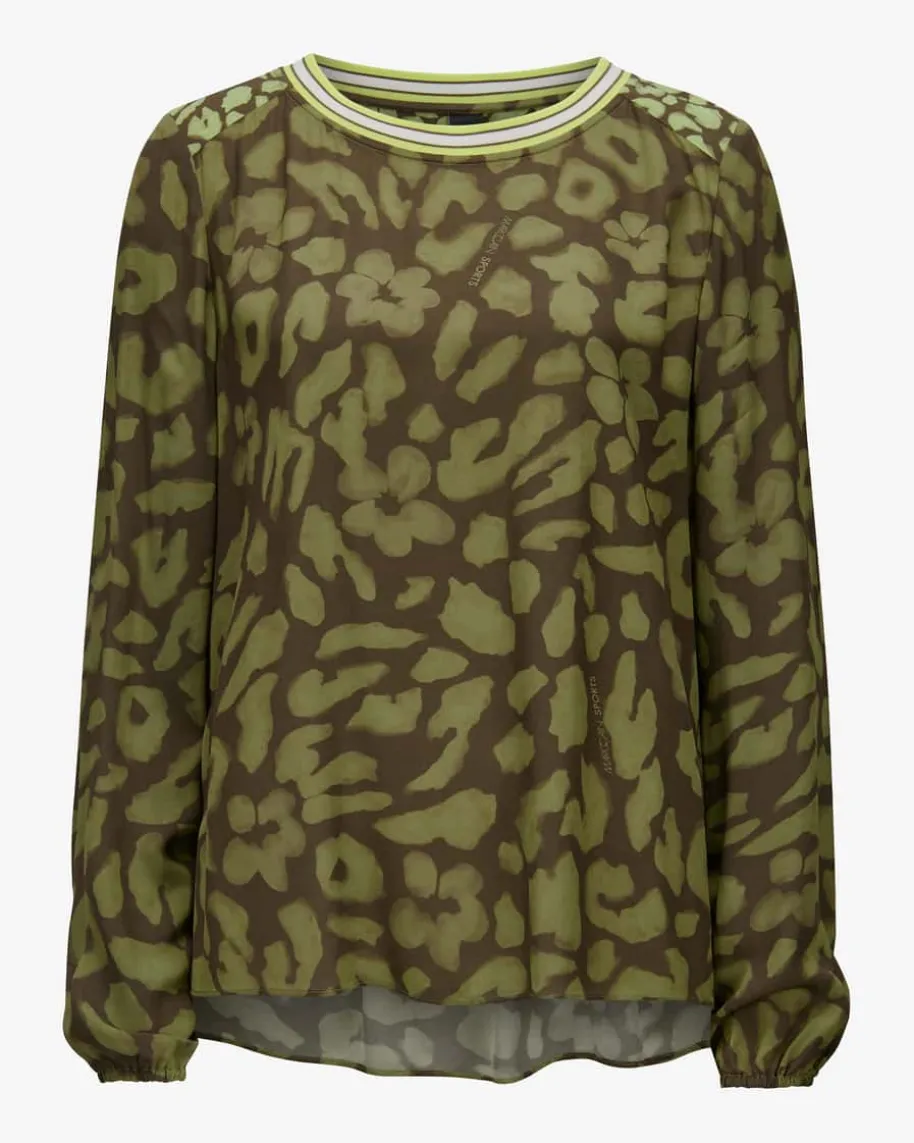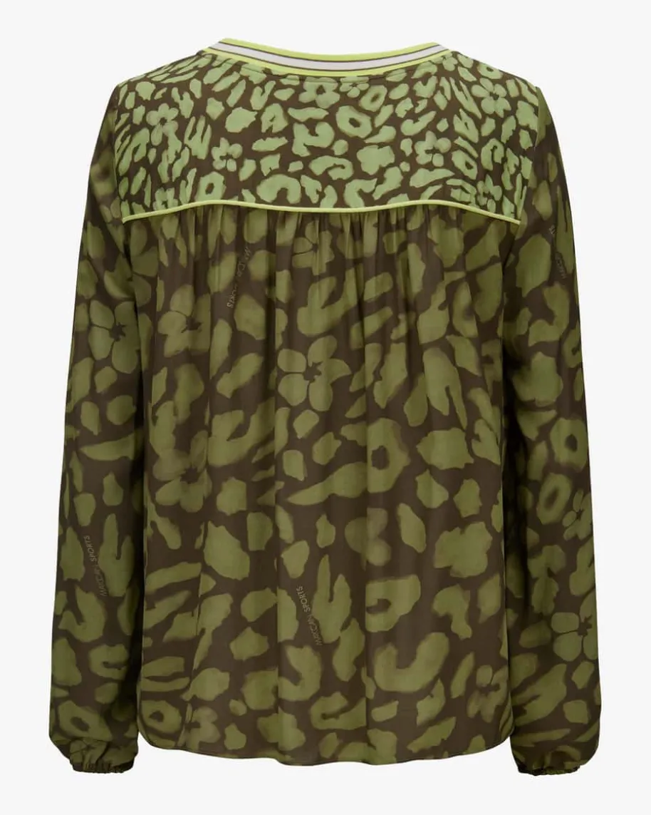 Bluse für Damen von Marc Cain in Oliv, Lemon und Weiß. Marc Cain verbindetÄsthetik und Kunst mit Lässigkeit und Natürlichkeit. Innovative Schnitte undeine farbenfrohe Palette prägen das deutsche Label. Auch dieses Modell überzeugtmit fließendem Viskose-Material und lockerer Silhouette. Das modische Leo-Muster, kombiniert mit kontrastfarbenen Details, verleiht dem Look stilvolleRaffinesse.