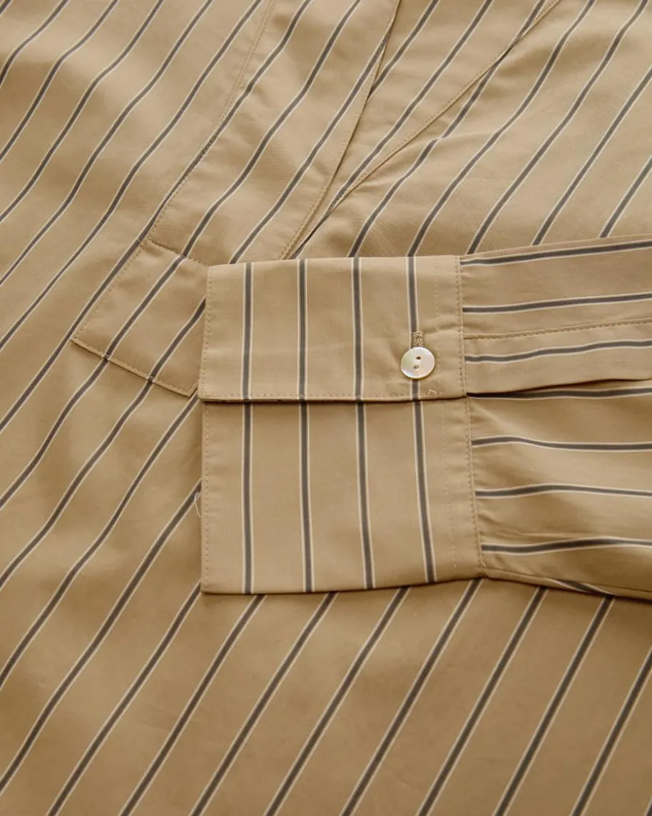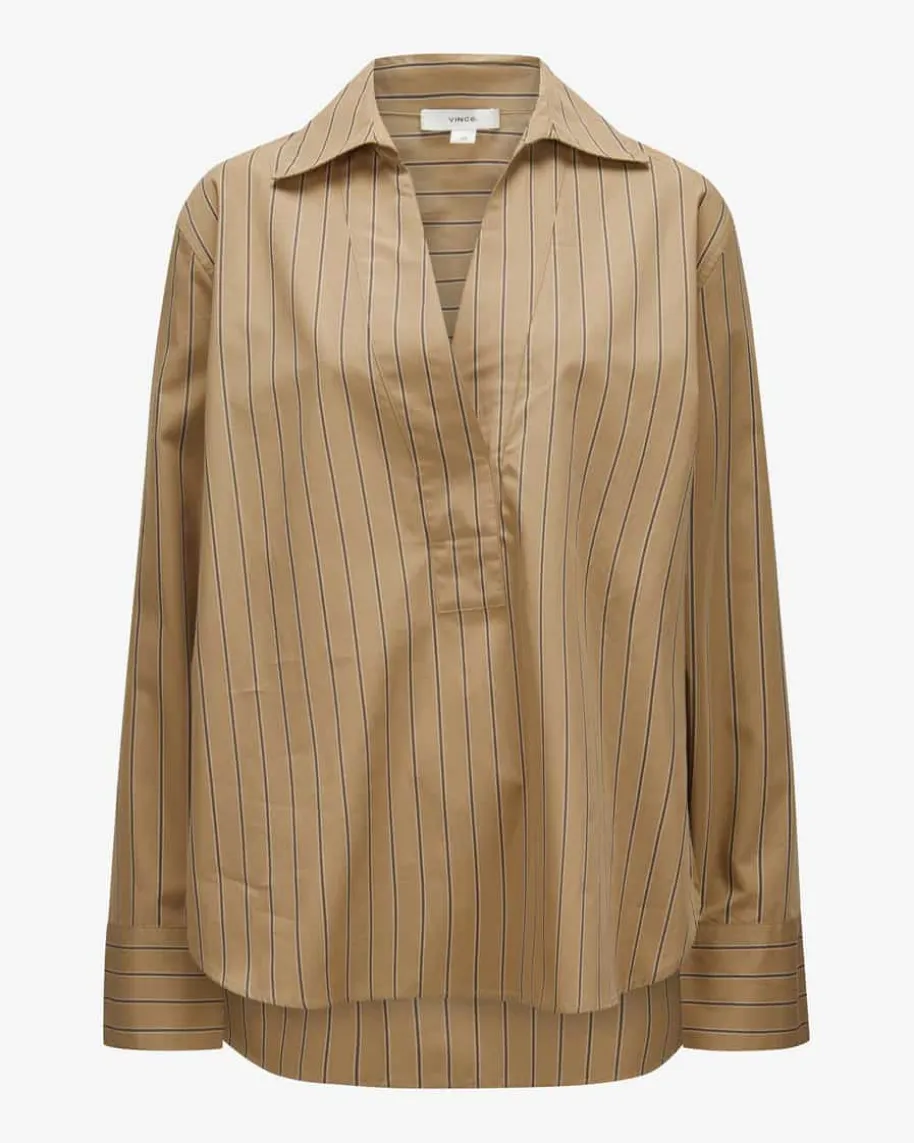 Bluse für Damen von Vince in Sand, Dunkelgrau und Creme. Das Label steht fürkalifornisch inspirierte Mode mit mühelosem Stil – raffinierte, unkomplizierteTeile mit besonderer Leichtigkeit. Auch dieses Modell punktet mit leichterBaumwoll-Qualität und feinem Streifenmuster, während der geschlitzte Ausschnittmit Umlegekragen das stilvolle Modell gekonnt abrundet.