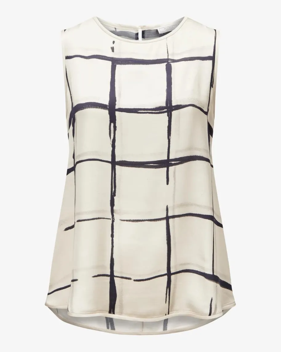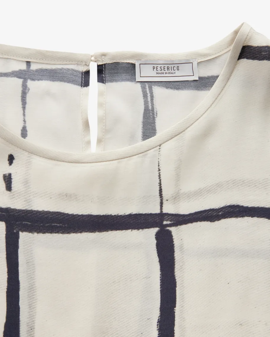 Blusentop für Damen von Peserico in Creme und Navy. Das Modell präsentiert sichin hochwertiger Viskose-Qualität und überzeugt mit angenehmen Tragemomenten,während das Karo-Dessin und klassische Details einen sommerlichen Begleiterkreieren.