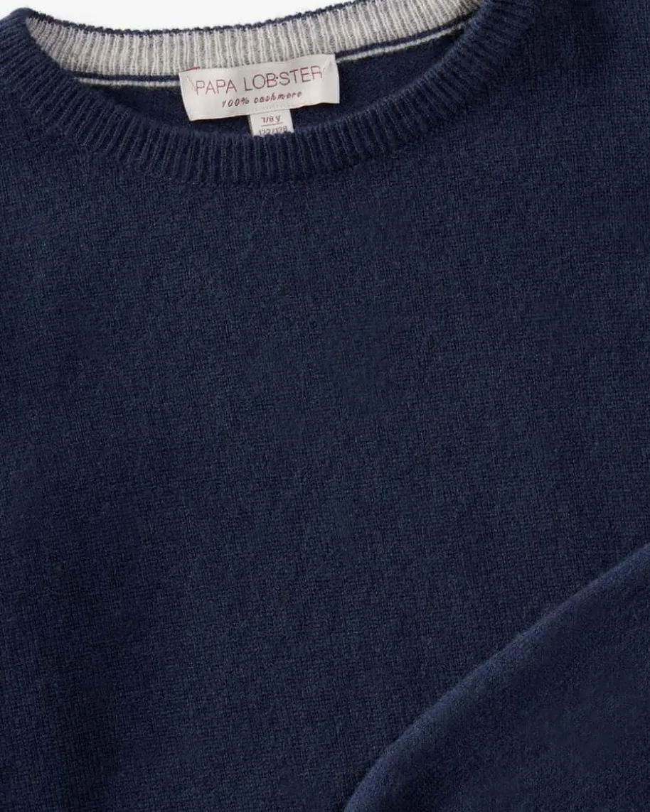 Bob Cashmere-Pullover für Jungen von Papa Lobster in Navy. Das Modell überzeugtin hochwertiger Cashmere-Qualität, welche angenehme Tragemomente beschert,während das cleane Design einen zeitlosen Begleiter kreiert.