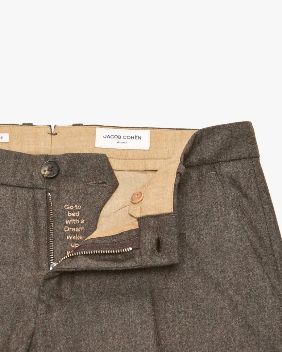 Bobby Wollhose für Herren von Jacob Cohen in Graugrün. Die klassischeSchnittführung sowie die hochwertige Schurwoll-Qualität schaffen einenstilvollen Favoriten mit angenehmer Haptik – Der perfekte Begleiter für modischeOffice-Looks.
