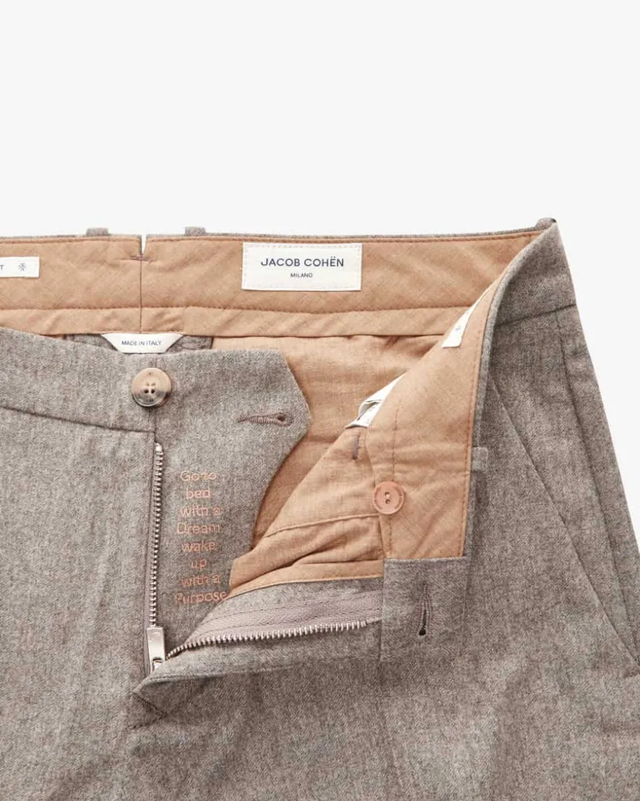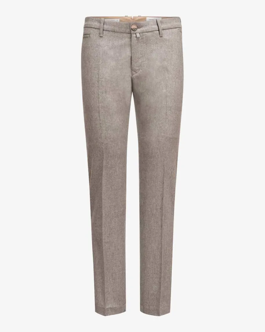 Bobby Wollhose für Herren von Jacob Cohen in Taupe. Die klassischeSchnittführung sowie die hochwertige Schurwoll-Qualität schaffen einenstilvollen Favoriten mit angenehmer Haptik – Der perfekte Begleiter für modischeOffice-Looks.