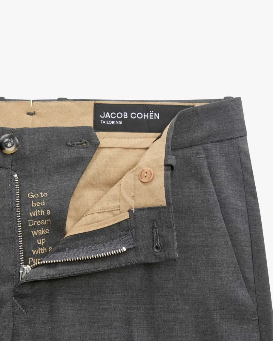 Bobby Hose Slim Fit für Herren von Jacob Cohen in Anthrazit. Handgefertigt inItalien – Dank hochwertigem Schurwoll-Mix und schmaler Passform überzeugt dasModell mit angenehmen Tragemomenten, während die cleane Aufmachung einenzeitlosen Begleiter für vielseitige Styles schafft.