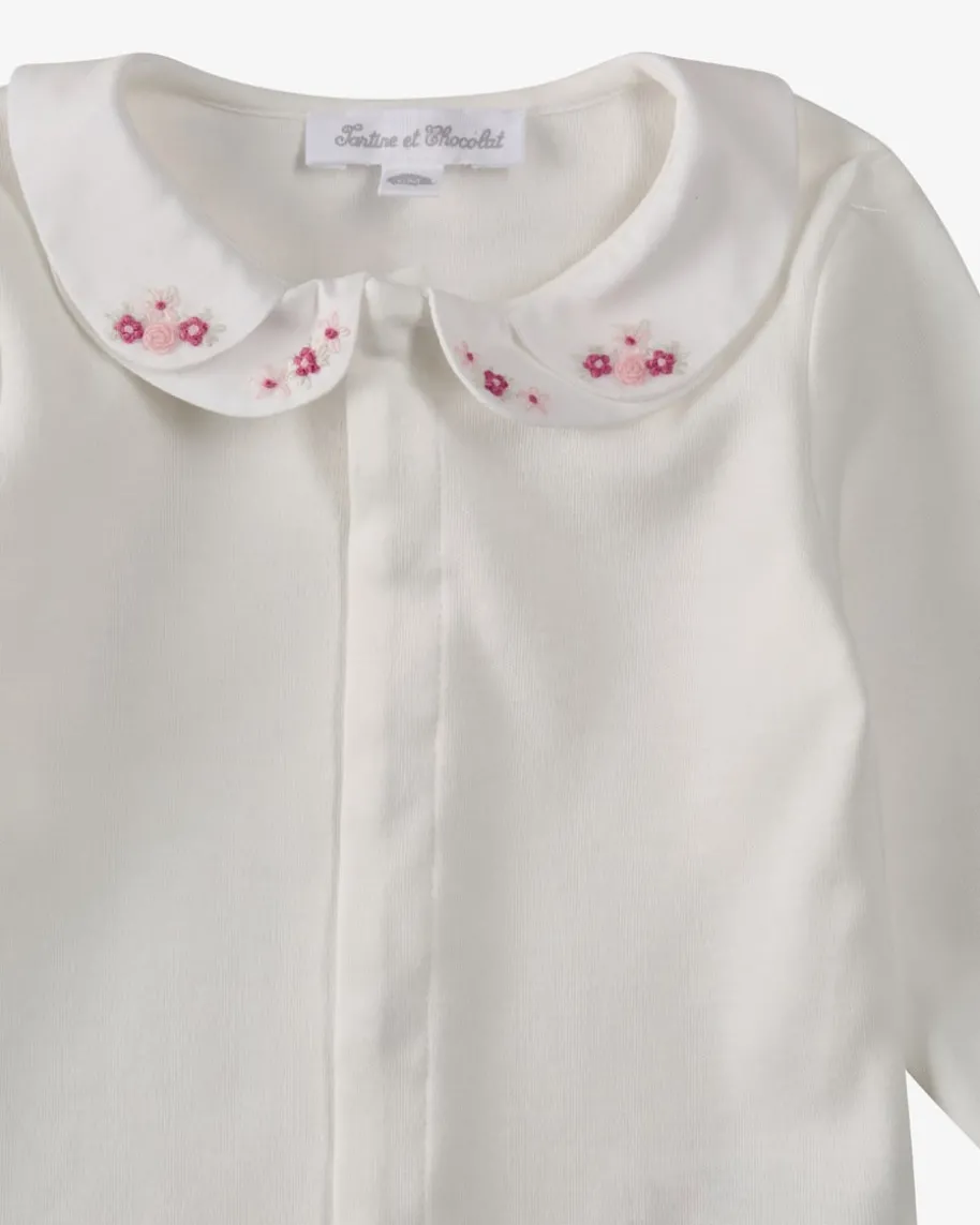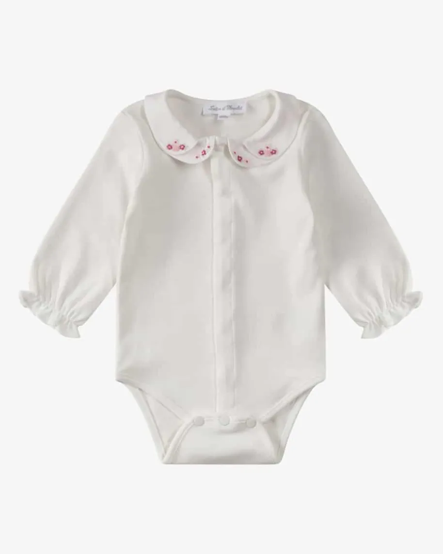 Body für Mädchen von Tartine et Chocolat in Weiß und Rosa. Dieses Modell punktetmit angenehmer Baumwoll-Qualität, die Ihrem Liebling einen hohen Tragekomfortbietet, während die zarten Stickereien am Kragen für einen niedlichen Looksorgen. Die Druckknopfleisten garantieren zudem ein einfaches An- und Ausziehen.