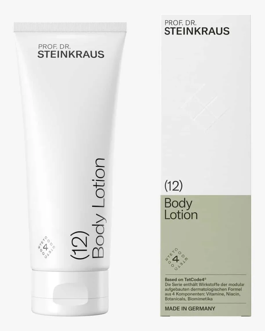 Body Lotion 200ml von Prof. Dr. Steinkraus. Die feinkomponierte Body Lotion verwöhnt jeden Hauttyp mit einemeinzigartigen, hoch wirksamen Cocktail an pflanzlichenPowerstoffen. Sheabutter, Bienenwachs und Squalan fügen sichperfekt in die Struktur der Hautoberfläche ein und sorgenschnell wieder für die natürliche Balance. Jojobaöl, Ureaund Sorbitol füllen die Feuchtigkeitsdepots auf und schenkenGeschmeidigkeit von innen heraus. Auch sonnengestresste Hautkann durch Heidekrautextrakt bestens regenerieren. Dankihrer zarten Textur verschmilzt die Lotion bereits beimAuftragen mit der Haut und hinterlässt eine angenehme, sehrdezente Zitrusduftnote.
