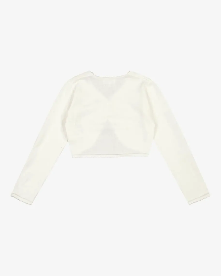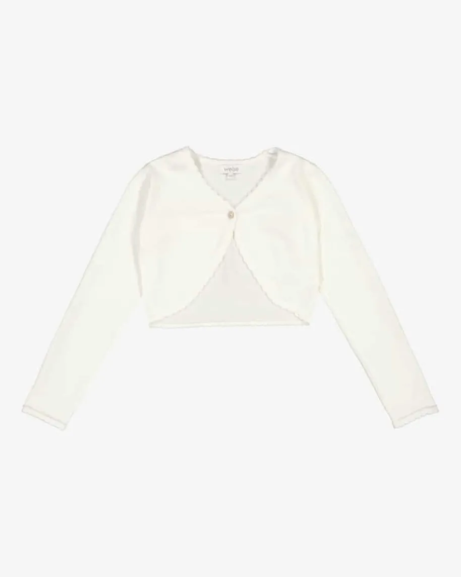 Bolero für Mädchen von Weise in Creme. Das Modell begeistert dank schlichterAufmachung als perfekter Begleiter bei festlichen Anlässen. Kann idealerweise zueinem Kommunionskleid getragen werden.