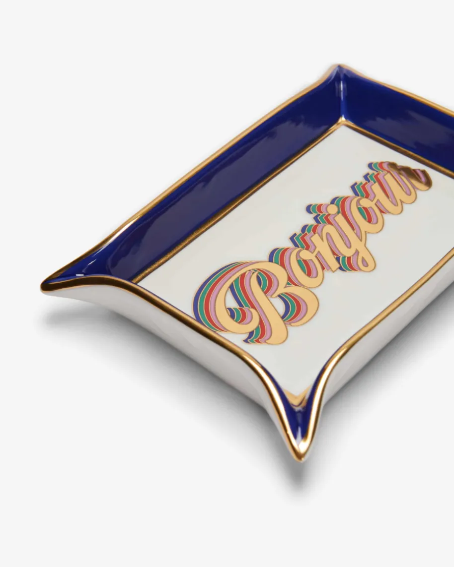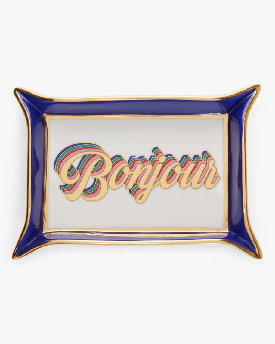 Bonjour Schmuckschale von Jonathan Adler in Navy, Weiß und Gold. Der New YorkerStar-Keramiker präsentiert mit seinen Kreationen einzigartige Interior- Designs.Dieses Modell besticht in goldenen Details und modischem Bonjour-Motiv undschafft so eine charmante Aufbewahrung für Ihre Schmuckstücke.