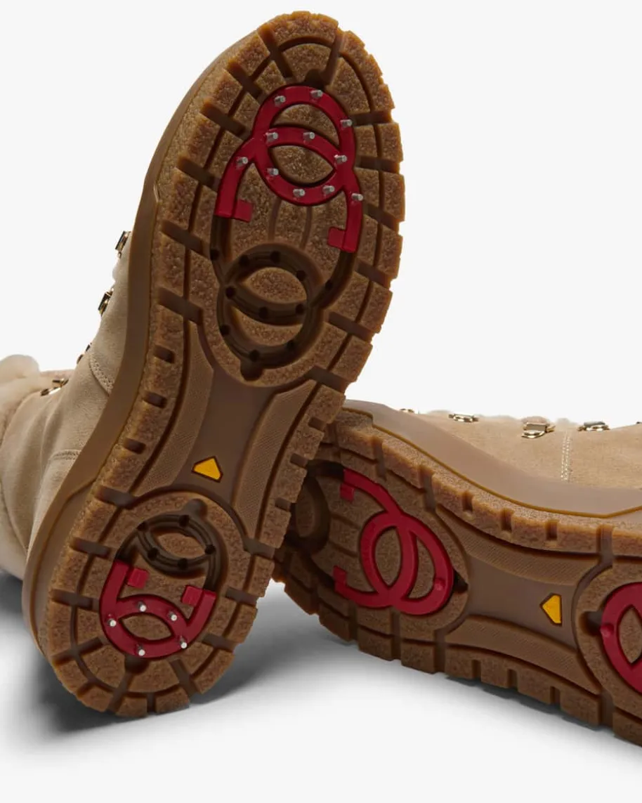 Boots für Damen von Bogner in Sand. Das Modell zeichnet sich durch diehochwertige Veloursleder-Qualität mit weichem und glatten Lammfellfutter aus,wodurch ein wärmender und zugleich moderner Begleiter im Equestrian-Stilentsteht. Zudem runden die dezent goldenen Metallösen sowie Logo-Details denLook im edlen Stil ab. Ein weiteres Highlight ist das in der Sohle integrierteAnti-Rutsch-System, das je nach Bedarf aktiviert werden kann.
