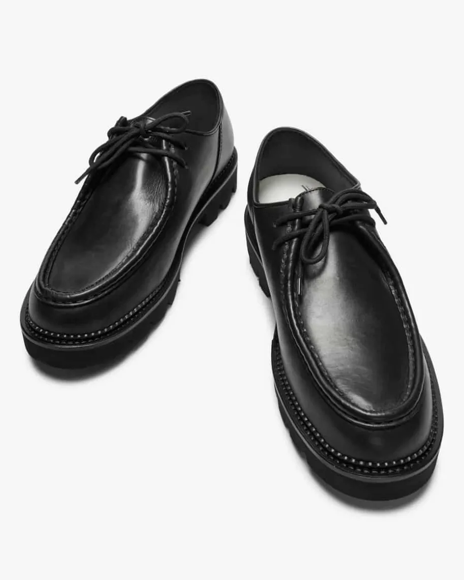Boots für Herren von Collegium in Schwarz. Das Modell aus hochwertigemGlattleder präsentiert sich dank der kurzen Schnürung und der Steppnaht inmaskuliner Aufmachung, während das cleane Design einen modischen Look kreiert.