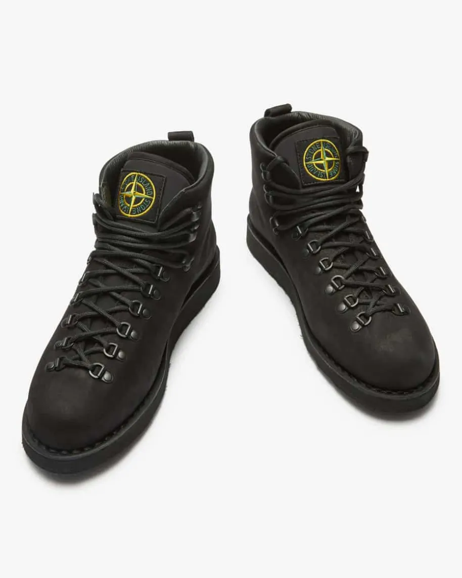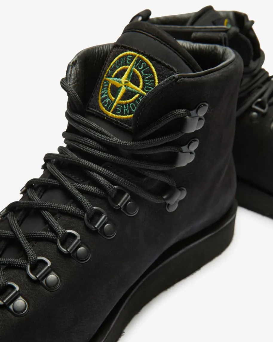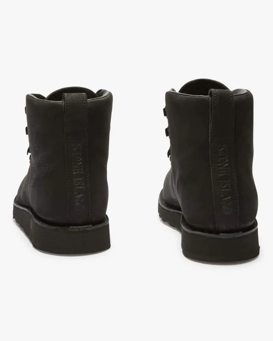 Boots für Herren von Stone Island in Schwarz. Das Modell überzeugt durchdie Verarbeitung von hochwertigem Leder in matter Optik, während der markanteLogo-Aufnäher das rustikale Gesamtbild labltypisch inszeniert. Zugleich bietendie Ösen-Schnürung sowie die Vibram-Sohle stabilen Halt.