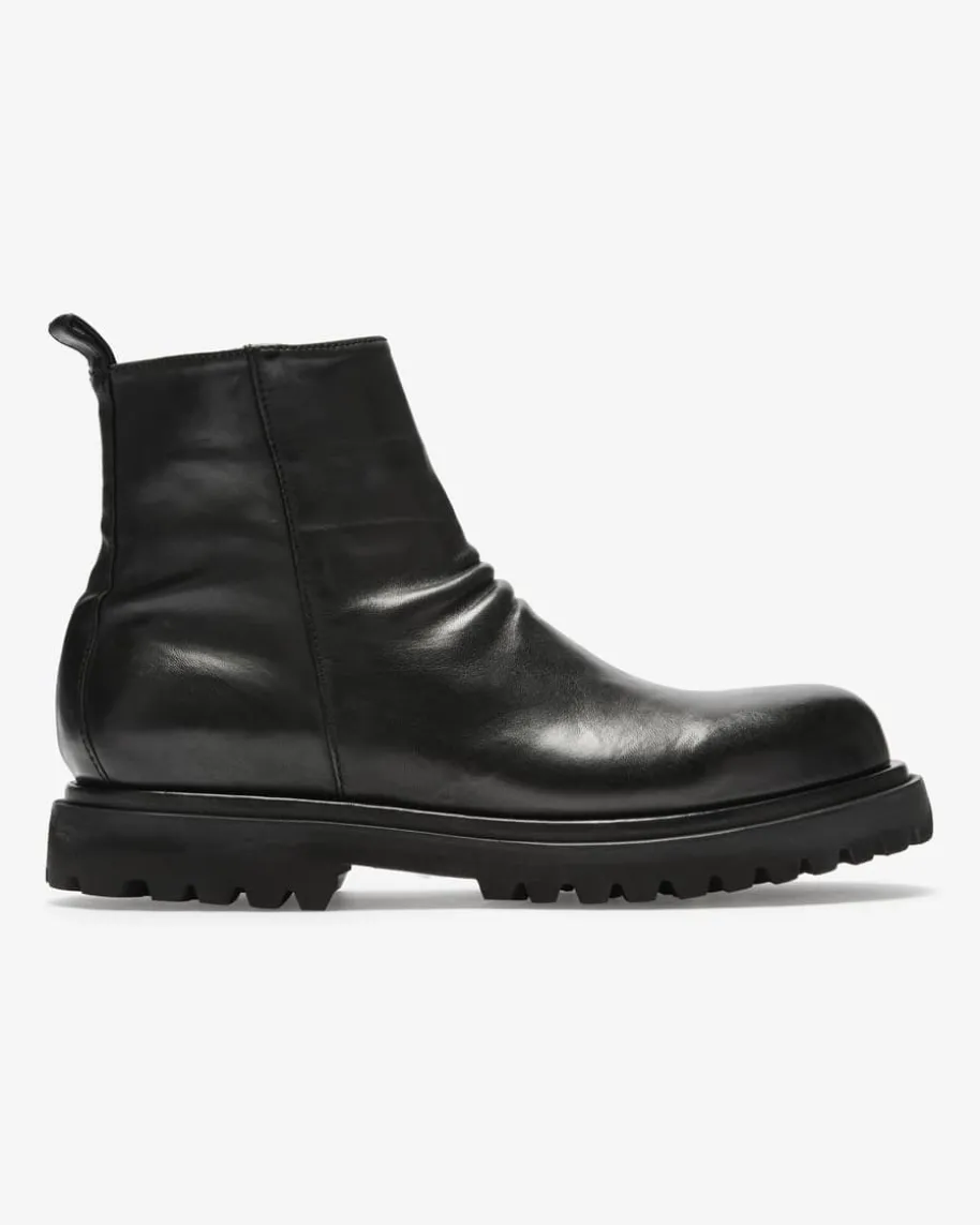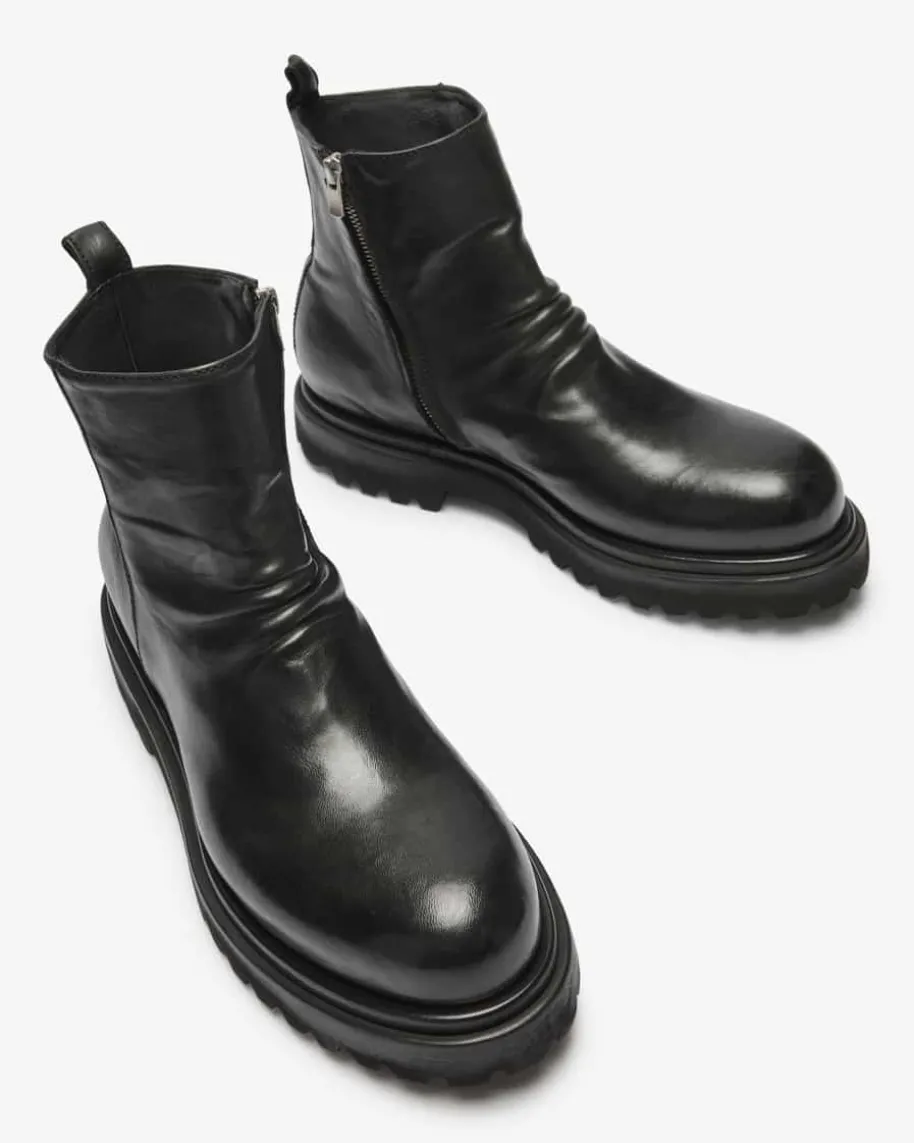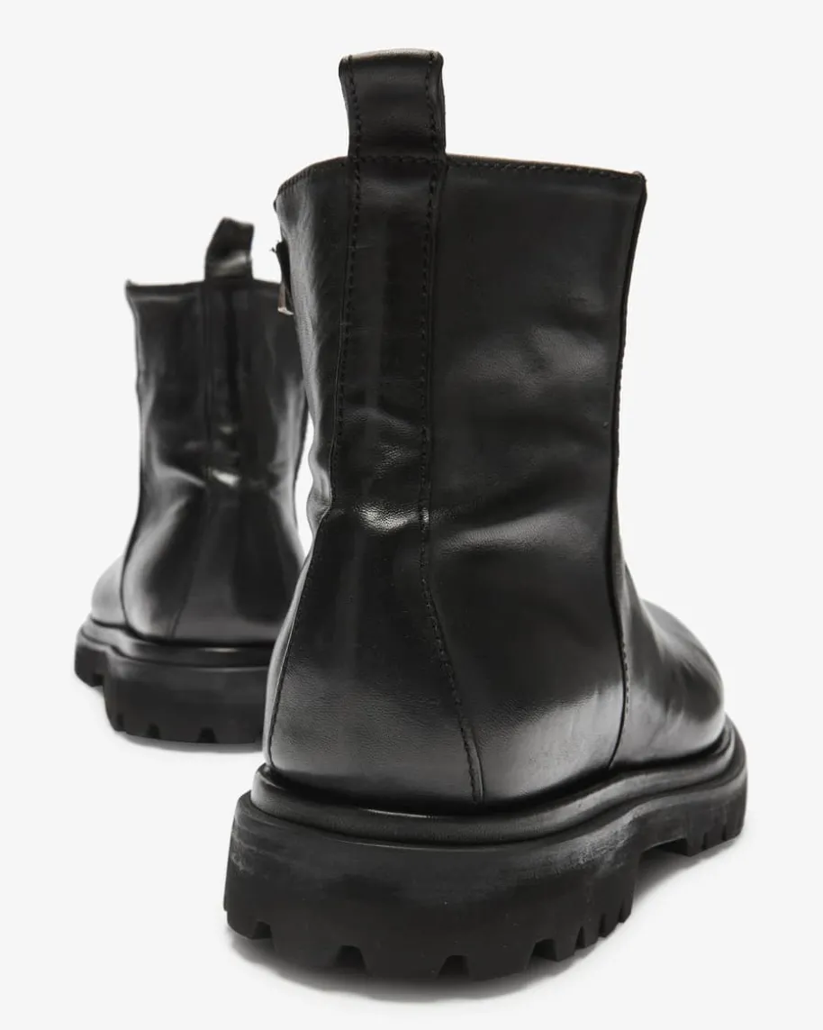 Boots für Herren von Officine Creative in Schwarz. Das in Italien handgefertigteModell überzeugt mit zeitlosem Design, während die hochwertige Verarbeitungzusammen mit der runden Schuhkappe und der groben Profilsohle den Look modischvollendet.