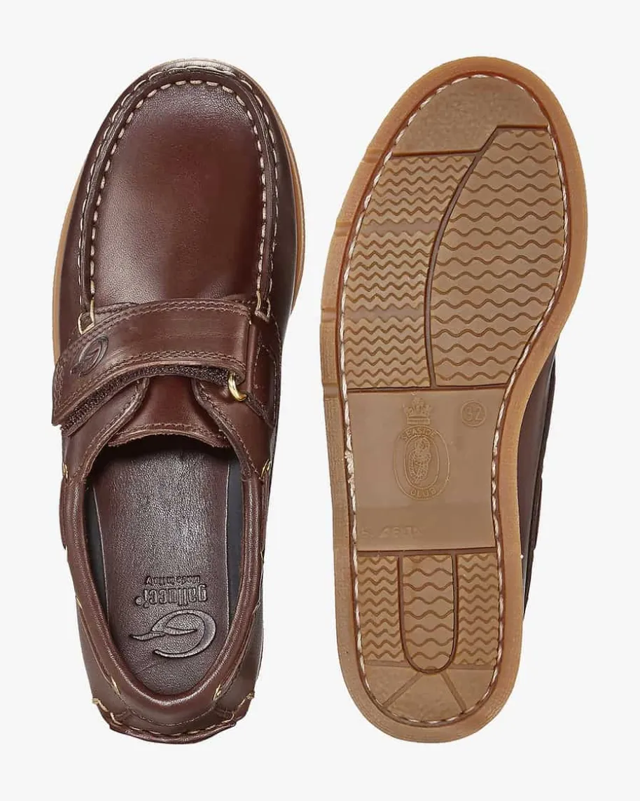 Boston Jungen-Halbschuhe von Gallucci in Dunkelbraun. Das Modell aus hochwertigem Leder besitzt ein sportives Design, das durch diverse Details an einen Segelschuh erinnert. Ein Klett-Verschluss sorgt für leichtes Anziehen, während eine Gummisohle sicheren Halt garantiert.