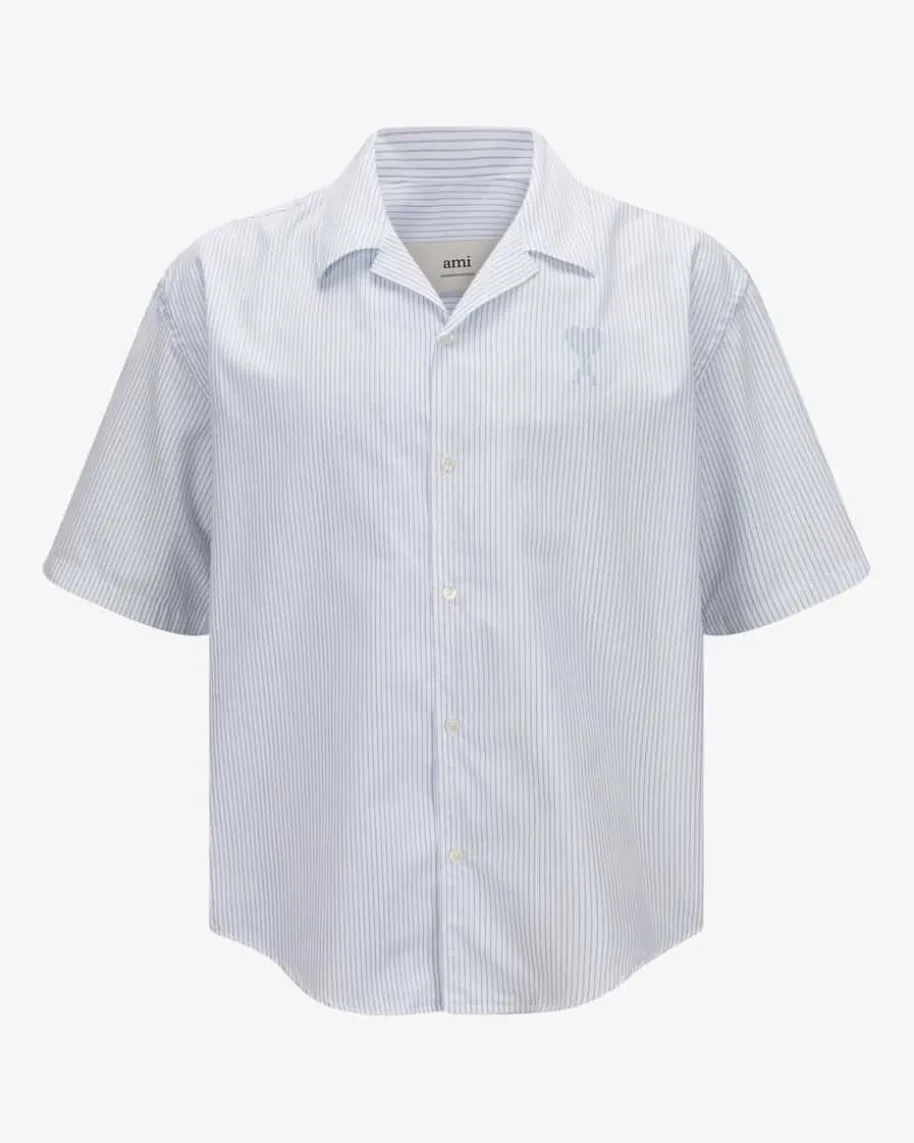 Bowlinghemd für Herren von Ami Paris in Weiß und Hellblau. Das Modellpräsentiert sich in moderner Aufmachung, während das schlichte Streifen-Dessineinen zeitlosen Look für Ihren Alltag kreiert. Zugleich rundet daskontrastierende Logo-Detail das Gesamtbild harmonisch ab.