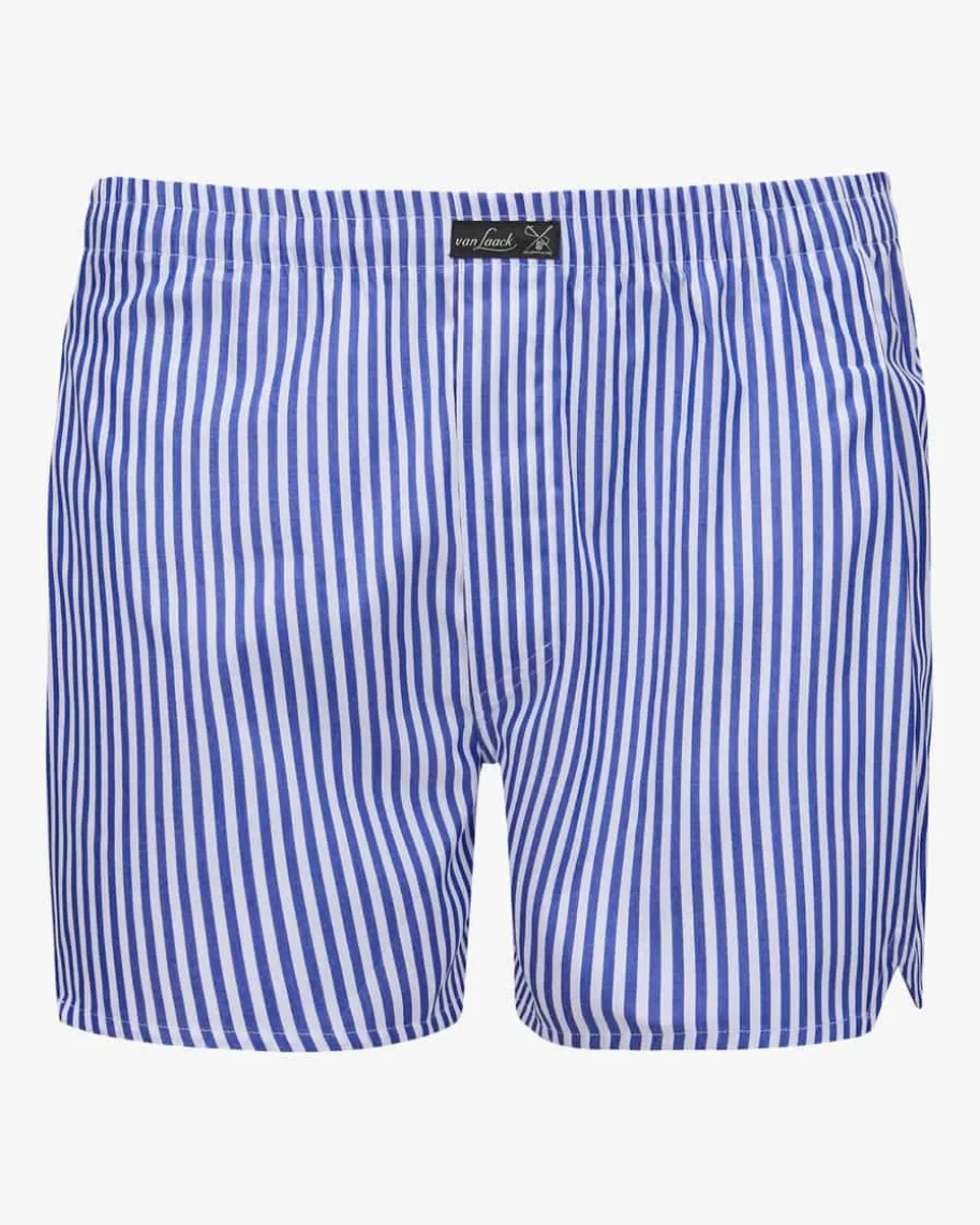 Boxershorts für Herren von van Laack in Blau und Weiß. Das Modell punktet dankder angenehmen Baumwoll-Qualität mit einem leichten Tragegefühl, während dasmodische Streifen-Dessin dem Gesamtbild den letzten Schliff verleiht.