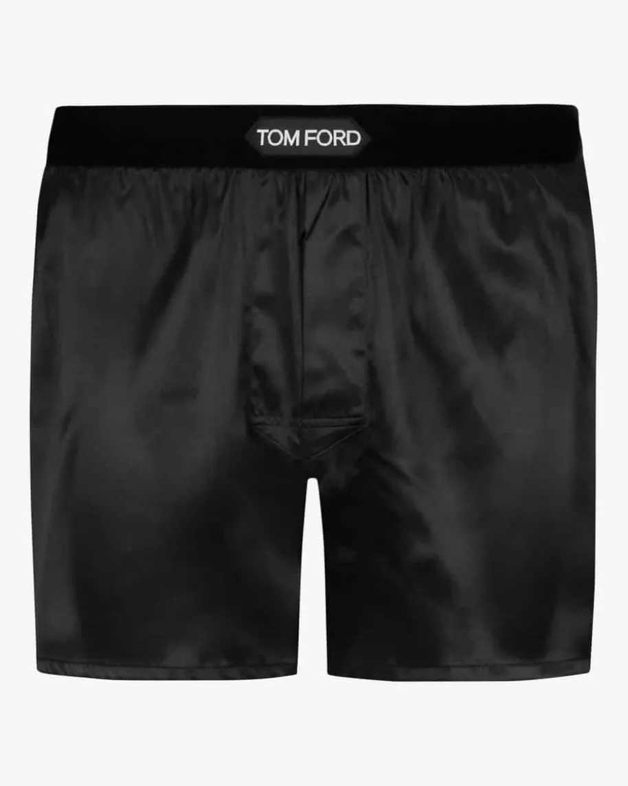 Boxershorts für Herren von Tom Ford in Schwarz. Die elastische Seiden-Qualitätsorgt für einen hochwertigen Look, während die changierende Verarbeitung inKombination mit dem Samt-Bund das edle Design gekonnt vollendet.