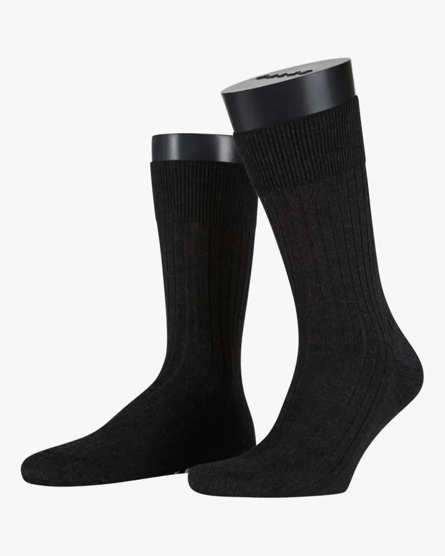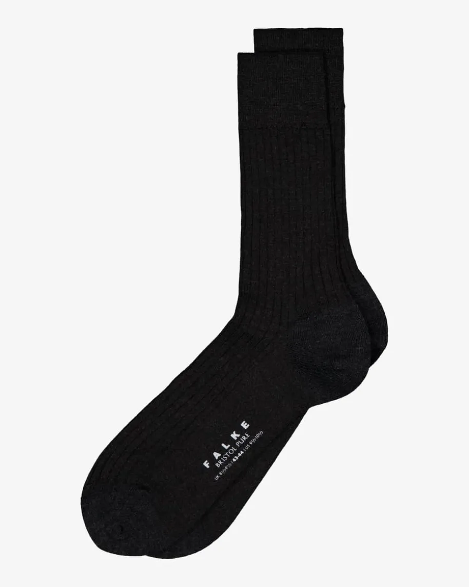 Bristol Strümpfe für Herren von Falke in Anthrazit. Dank der Ripp-Strukturpunktet dasModell mit einer eleganten Optik, während die Schurwoll-Verarbeitung für eineleichte, angenehme Haptik sorgt.