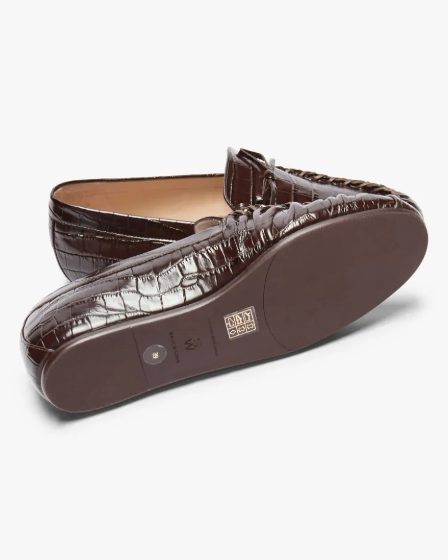 Britt Bow Mokassin für Damen von Stuart Weitzman in Walnuss. Die US-Marke istweltbekannt für elegante Pumps, Overknees und Bridal-Heels – luxuriös, abertragbar. Dieses Modell überzeugt dank des modischen geprägten Glattleders alsbesonderer Favorit, während die klassische Mokassin-Optik ein harmonischesGesamtbild kreiert.