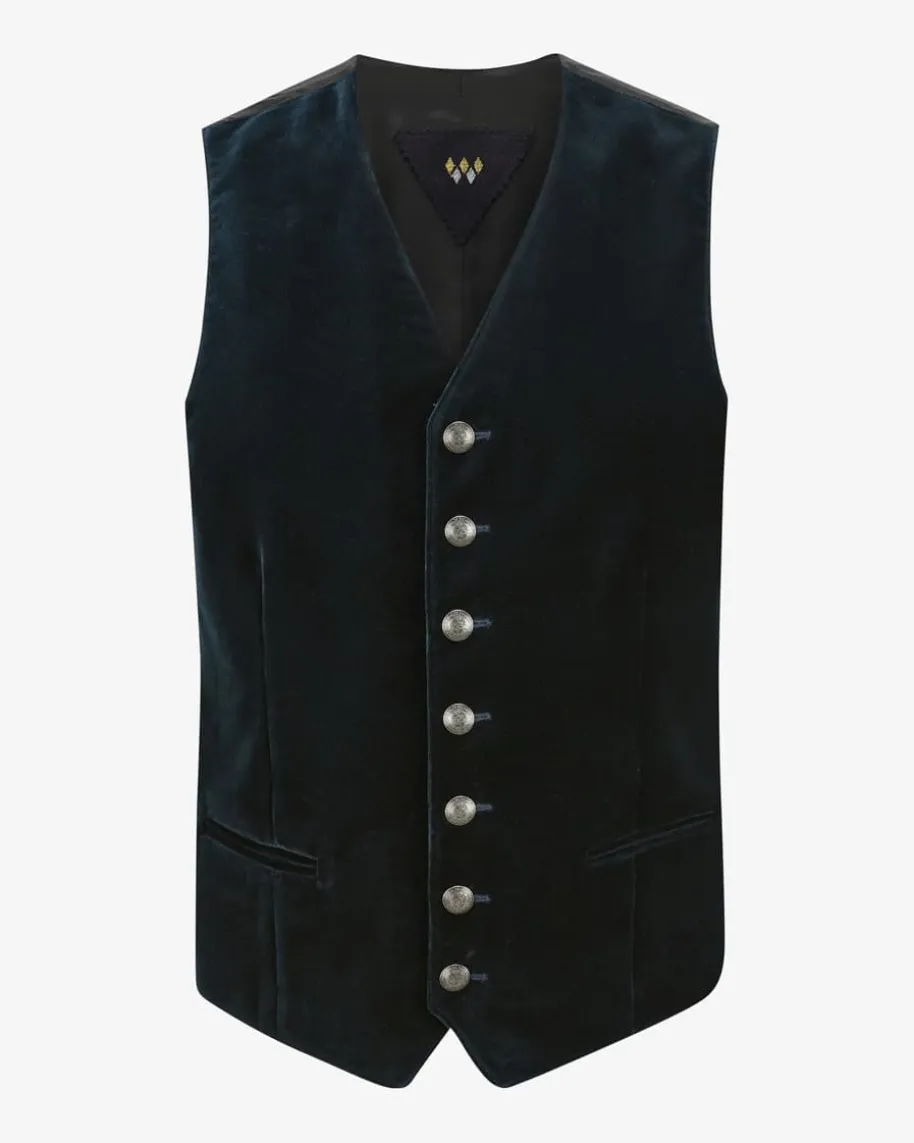 Bruck Trachtenweste für Herren von Schorsch Hackl in Dunkelblau und Schwarz.Bodenständig, echt, höchste Qualität – diese Eigenschaften verkörpern dieTrachten von Schorsch Hackl. Dieses modische Modell überzeugt in traditionellerAufmachung mit stilvollem Mix aus Samt und changierendem Rückenteil, während diesilberfarbenen Wappenknöpfe besondere Akzente setzen.