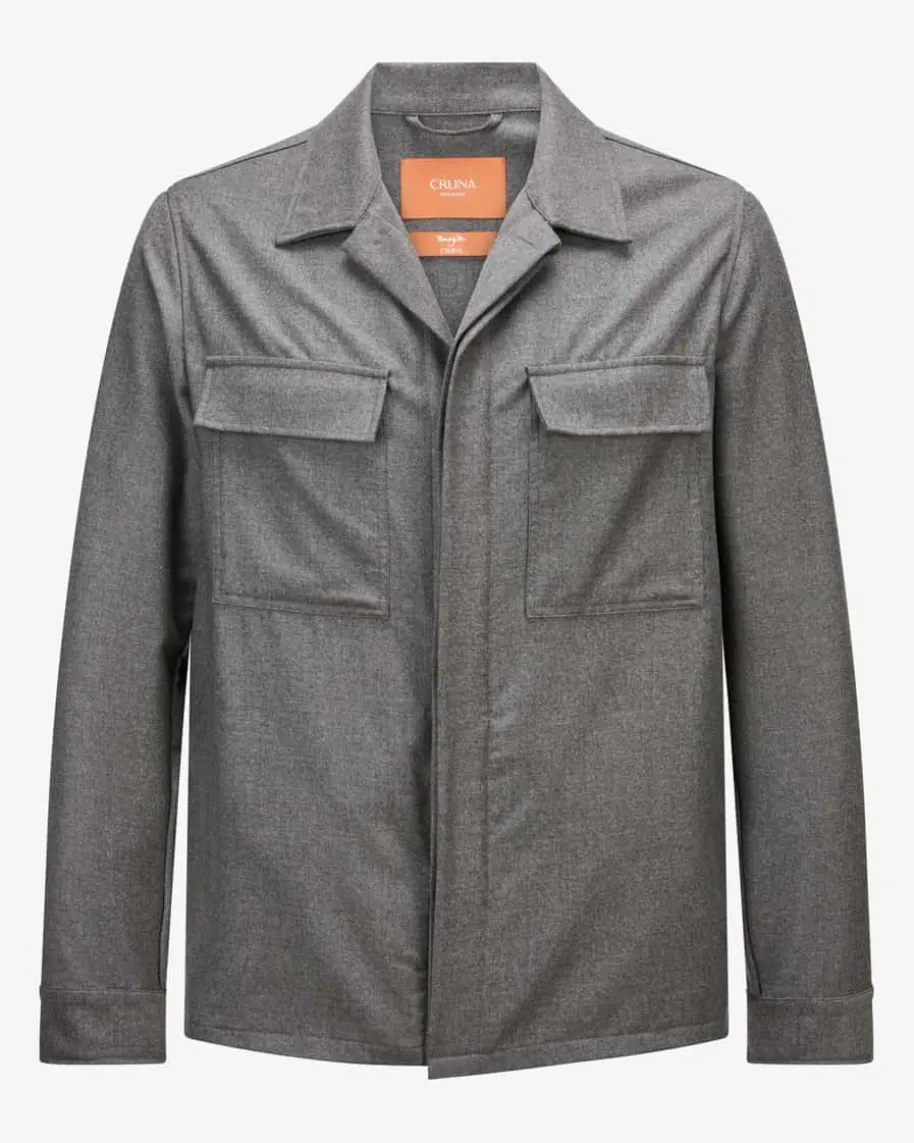 Bruges Shirtjacket für Herren von Cruna in Grau. Das Modell begeistert mitweichem Schurwolle-Cashmere-Mix, der angenehmen Tragekomfort verspricht.Klassische Hemd-Details und markante Klappentaschen runden den legeren Stylegekonnt ab.