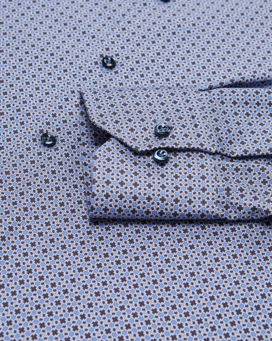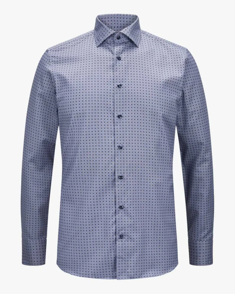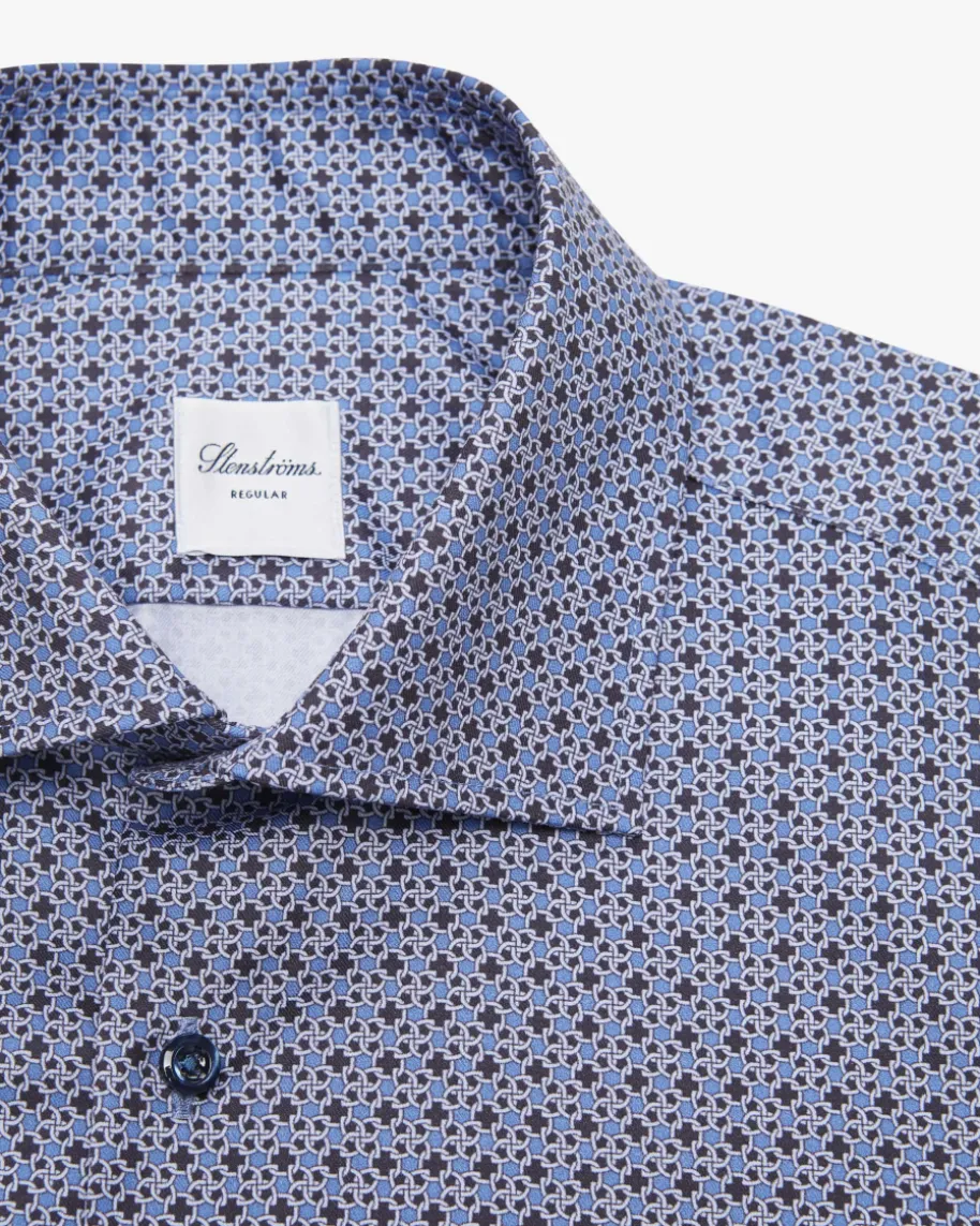 Businesshemd Regular für Herren von Stenströms in Blau, Schwarz und Weiß.Stilvoll und modern zugleich präsentiert sich das Modell aus hochwertiger,glatter Twofold-Baumwolle und avanciert dank originellem Allover-Kettenmuster zueinem perfekten Office-Begleiter.