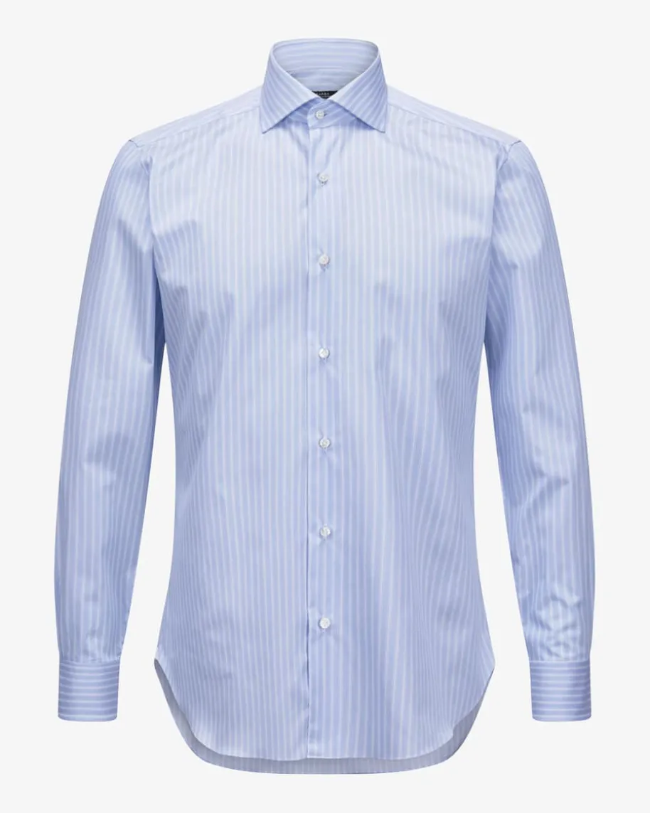 Businesshemd Slim für Herren von Barba in Hellblau und Weiß. Mit tailliertemSchnitt und klassischen Details überzeugt das Hemd als stilvolles Essential fürgehobene Business-Looks, während das moderne Streifen-Dessin das Gesamtbildgekonnt vollendet.