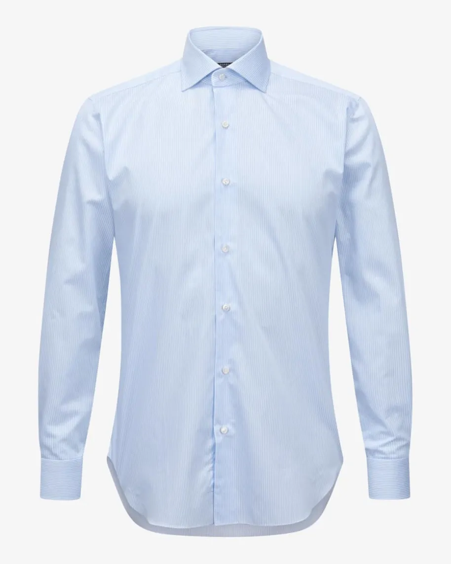 Businesshemd Slim für Herren von Barba in Hellblau und Weiß. Mit tailliertemSchnitt und klassischen Details überzeugt das Hemd als stilvolles Essential fürgehobene Business-Looks, während das moderne Streifen-Dessin das Gesamtbildgekonnt vollendet.