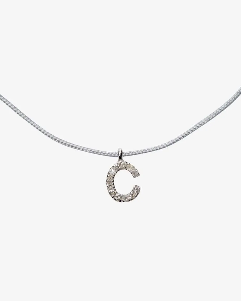 C-Glücksbändchen für Damen von Leaf in Graublau und Silber. Das filigraneSchmuckstückbesticht dank des diamantenbesetzten Anhängers aus Weißgold als besonderesHighlight, das sich perfekt für modische Lagen-Looks eignet.