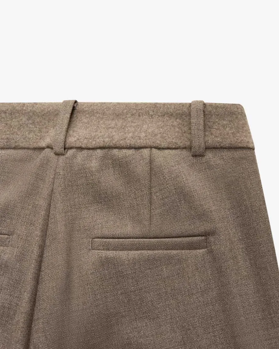 California Culotte für Damen von Cambio in Taupe. Das Modell überzeugt imangenehmen Woll-Mix und weiter Passform, während die Bundfalten zusammen mit demBund im Material-Mix den Look stilvoll abrunden.
