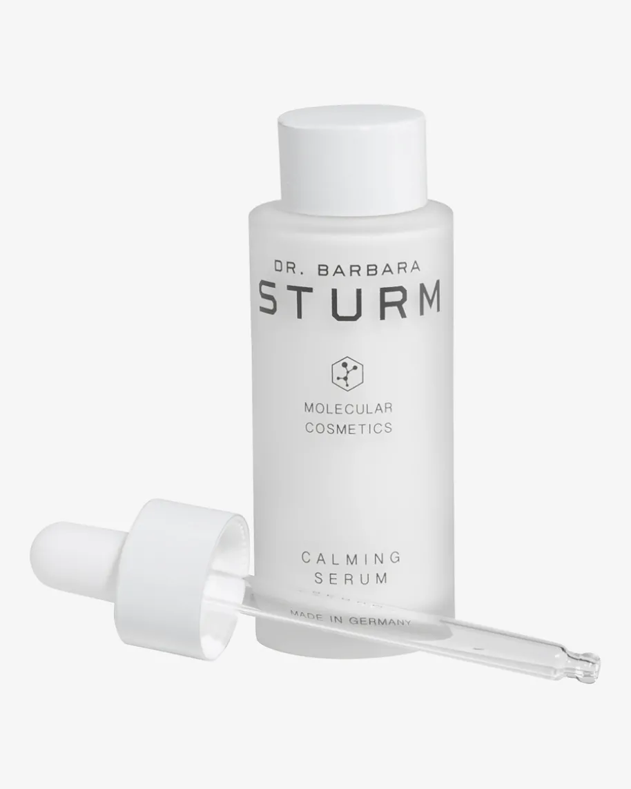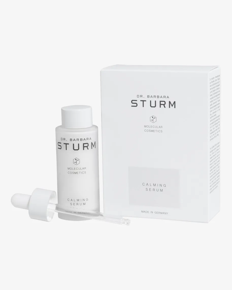 Calming Serum 30ml für Damen von Dr. Barbara Sturm. EinpflanzlicherWirkstoffkomplex aus Ballonrebe, Echium Plantagineum undSonnenblume bringtirritierte Haut wieder ins Gleichgewicht und hilft, Rötungenund Brennen zumindern. Der Eigenschutz der Haut wird gestärkt und siereagiert wenigerempfindlich. Der von Dr. Sturm eingesetzte SerienwirkstoffPurslane aktiviertdas hauteigene Antioxidans-System und schützt dieempfindlichen Zellmembranenvor dem Angriff Freier Radikale. Das Serum eignet sichhervorragend zumAusgleich der gestressten Haut, die z.B. unter Schlafmangel,Klimaanlage, Sonne,Rauchen oder Umweltbelastungen leidet. Es beruhigt die Hautauch nach demSonnenbad als After Sun Pflege.