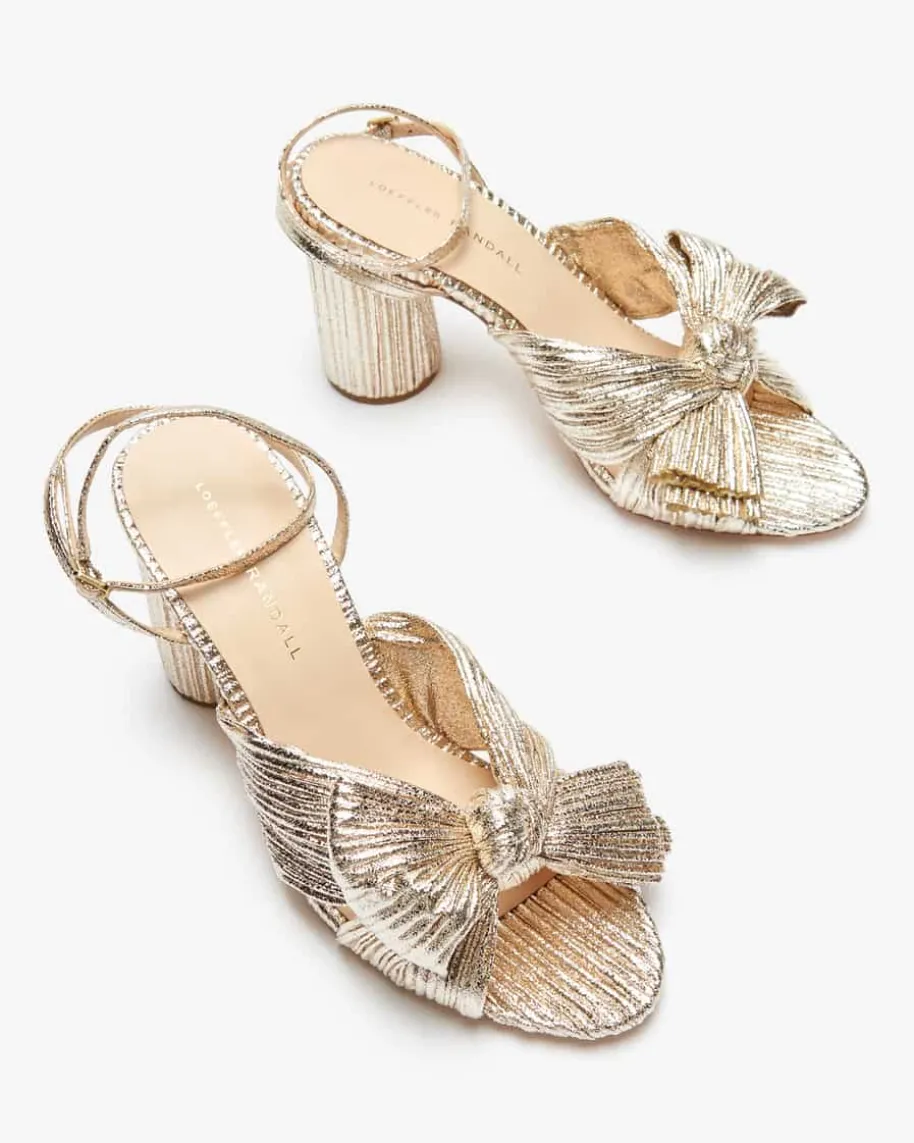 Camellia Sandaletten für Damen von Loeffler Randall in Gold. Das eleganteModell präsentiert sich dank changierender Material-Verarbeitung instilvoller Aufmachung. Zugleich runden das Schleifen-Detail sowie der filigraneRiemen den Look feminin ab – ein perfekter Begleiter für modische Auftritte.