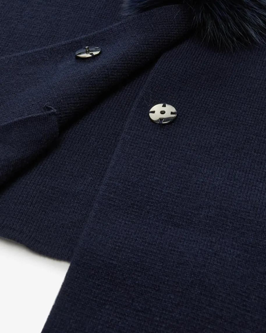 Cape für Damen von Giovi in Marine. Das Modell verspricht dank dem hochwertigenCashmere-Mix angenehme Tragemomente, während der Fuchspelz-Besatz am Kragen demDesign eine elegante Note verleiht.